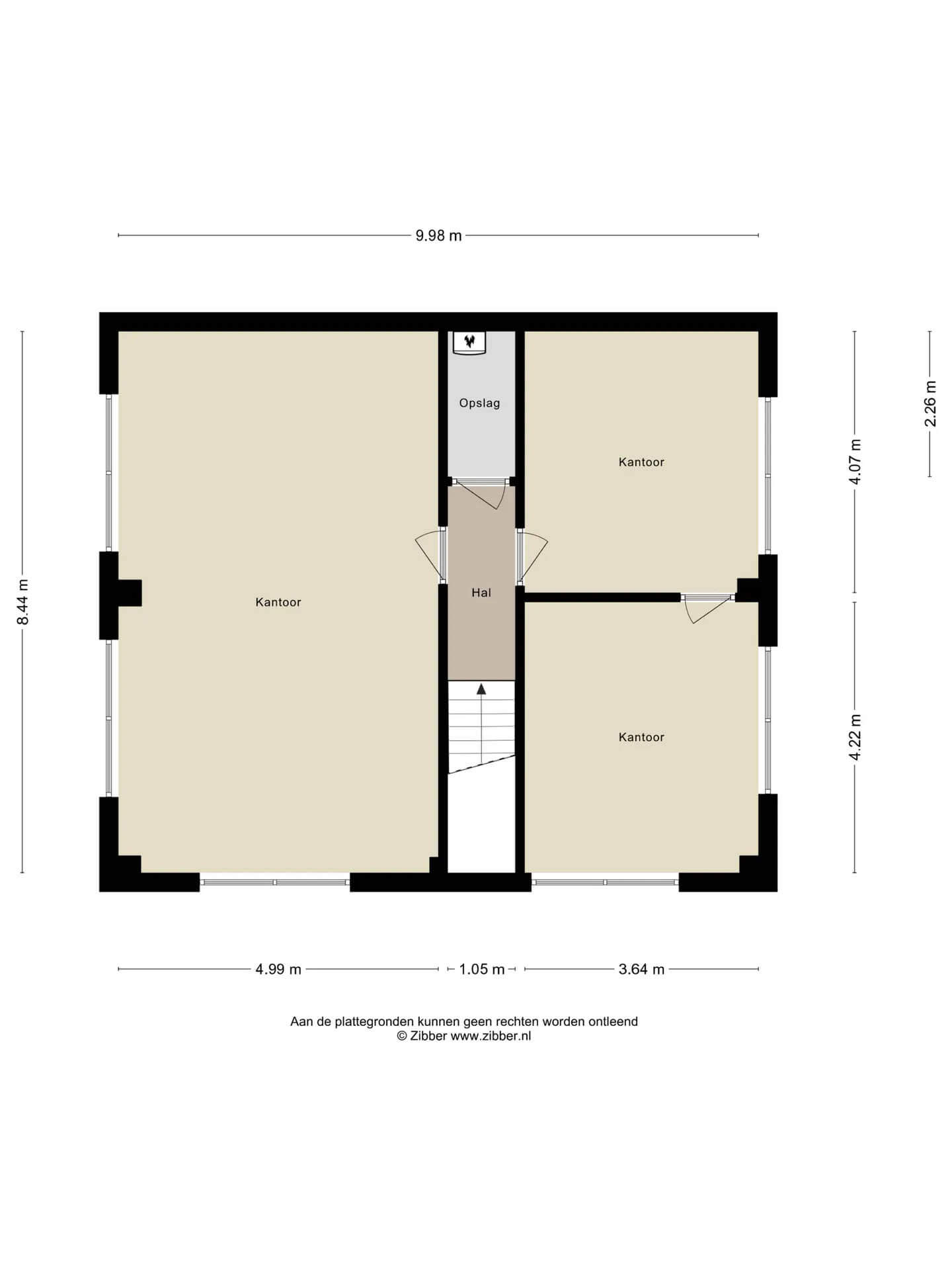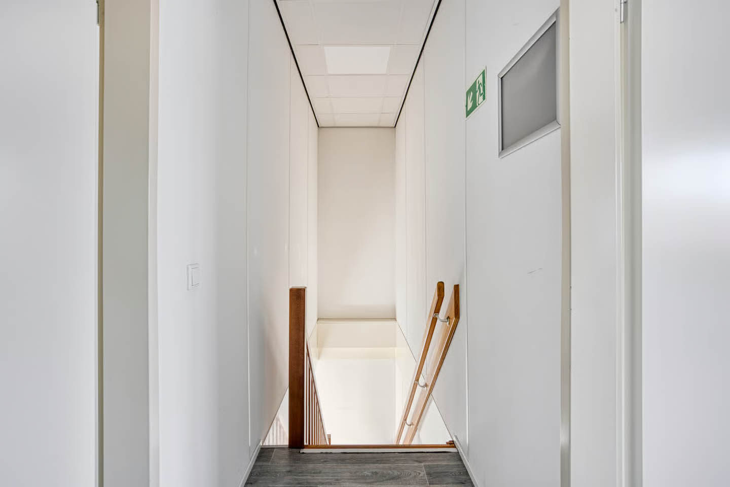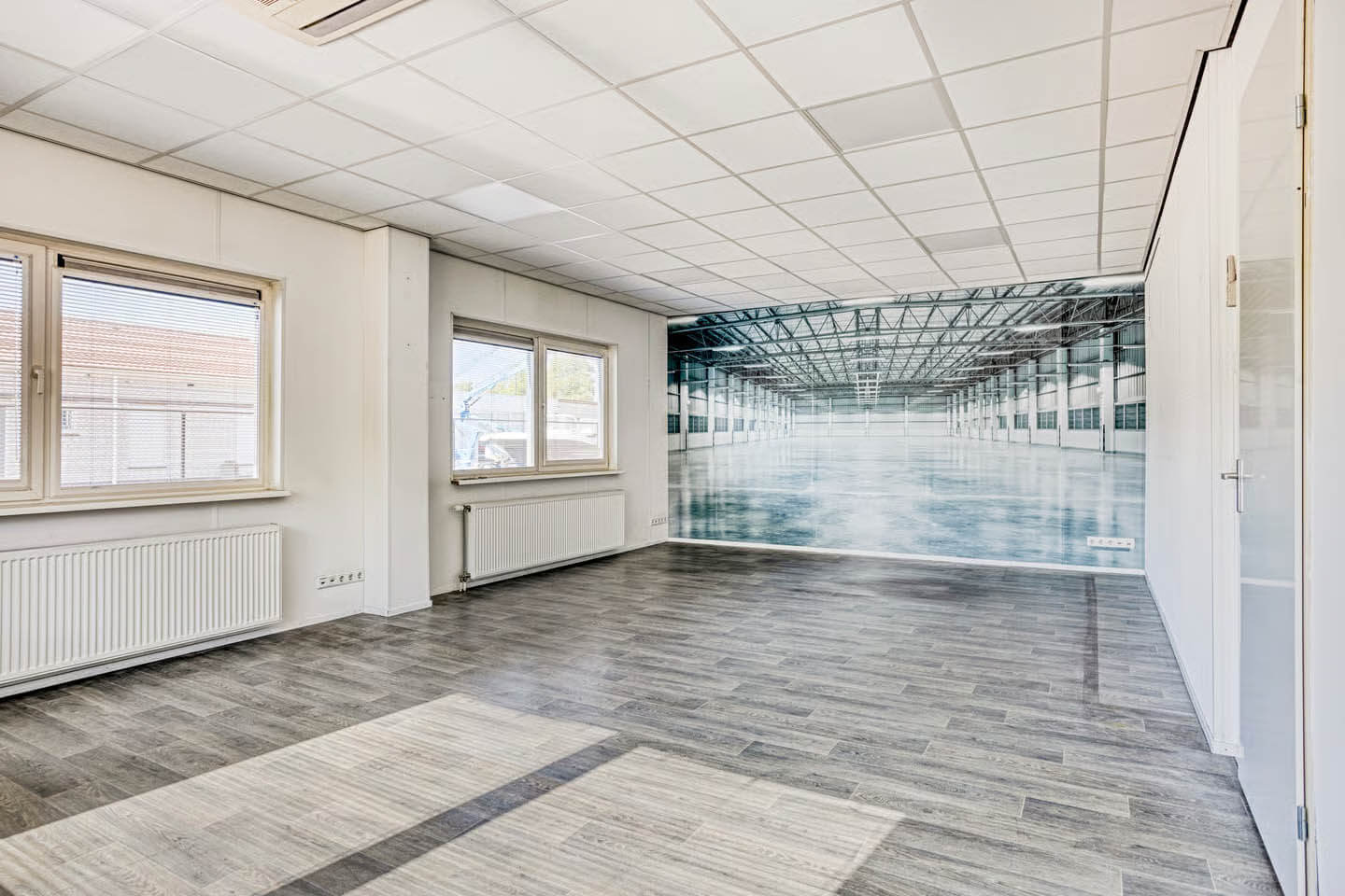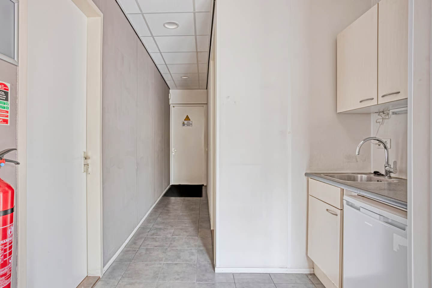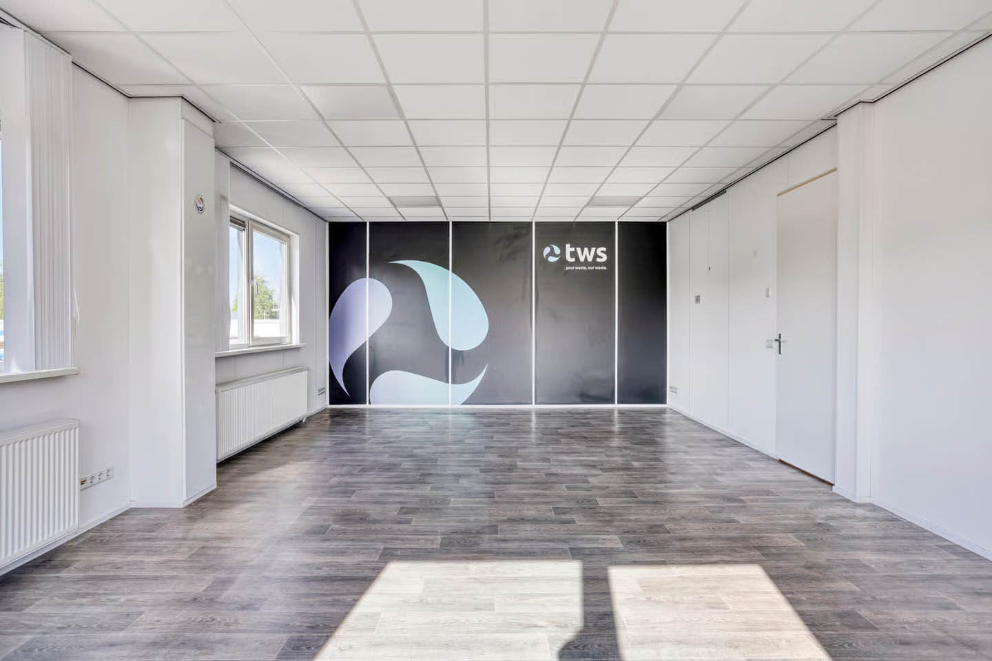 - kantoor II, v.v. betonnen vloer gedekt met laminaat, systeemwanden, systeemplafond en airco.