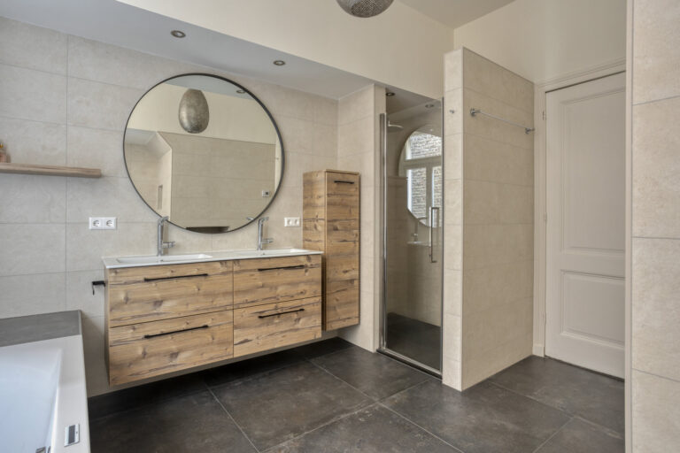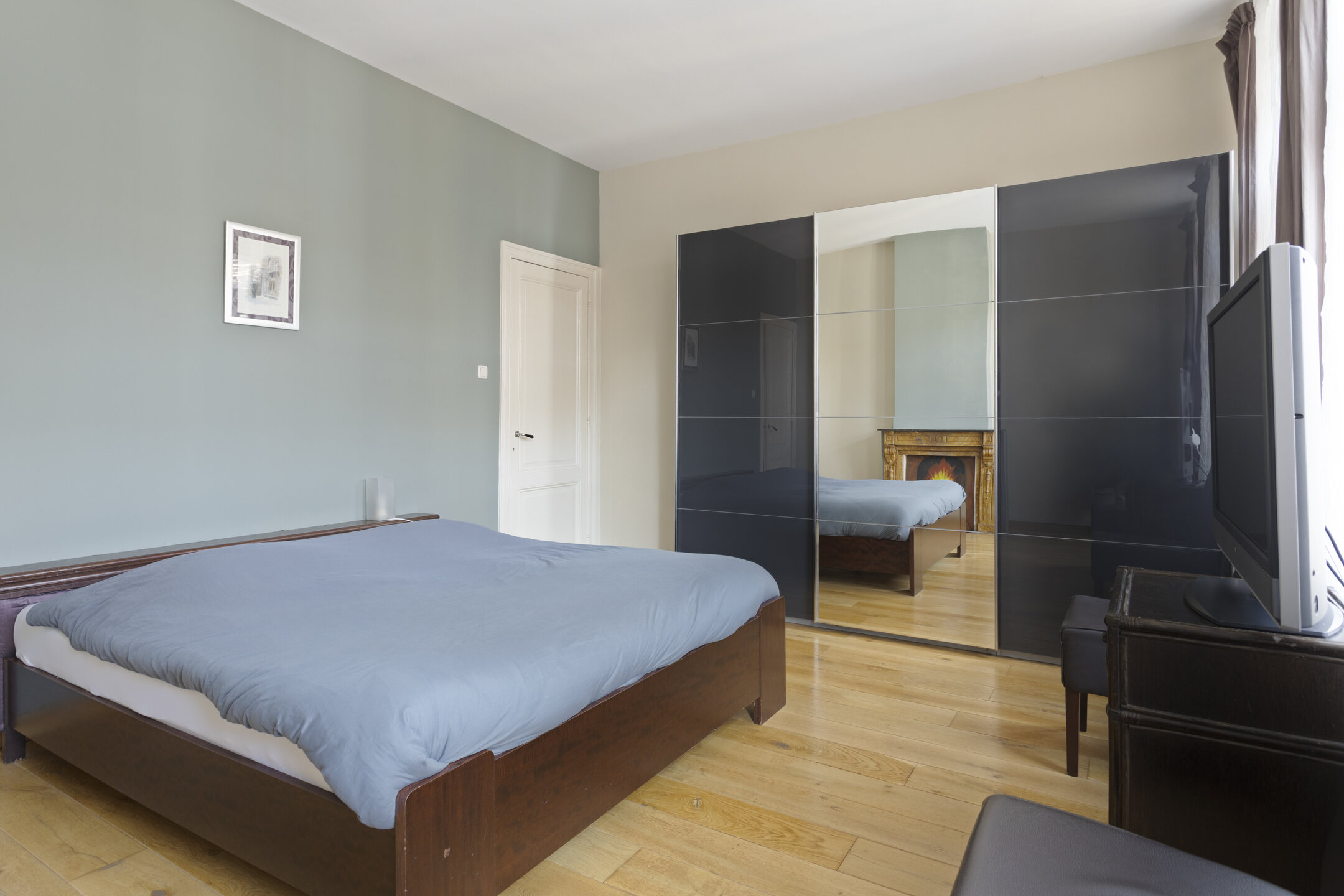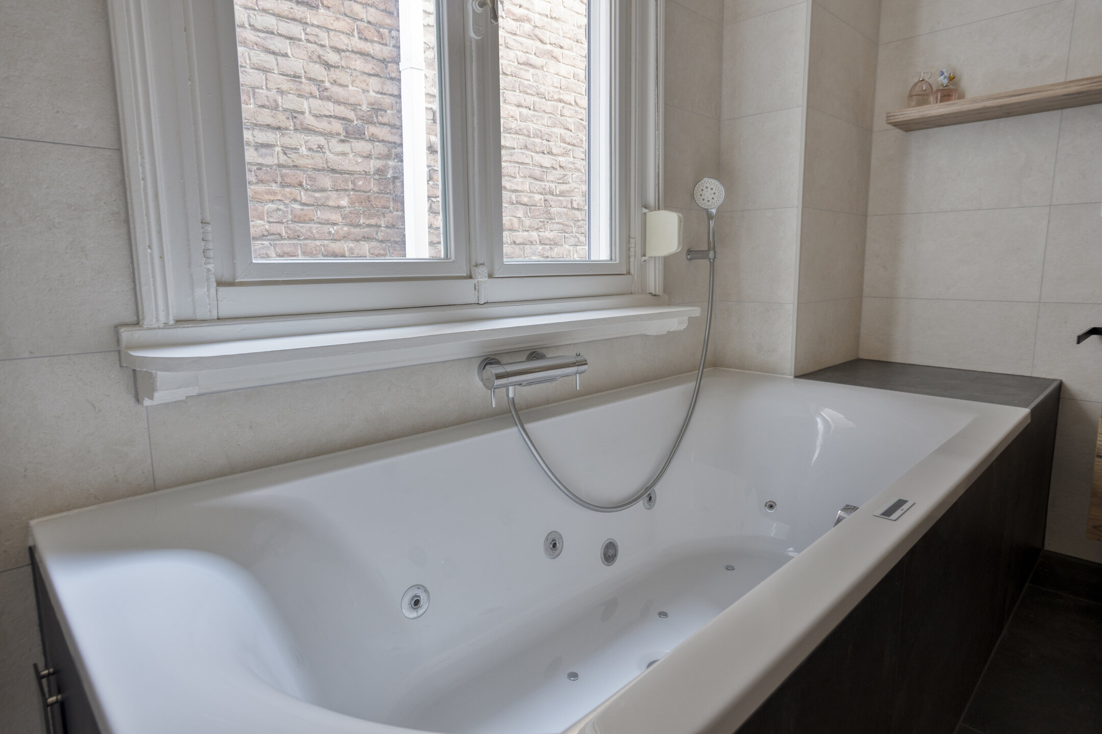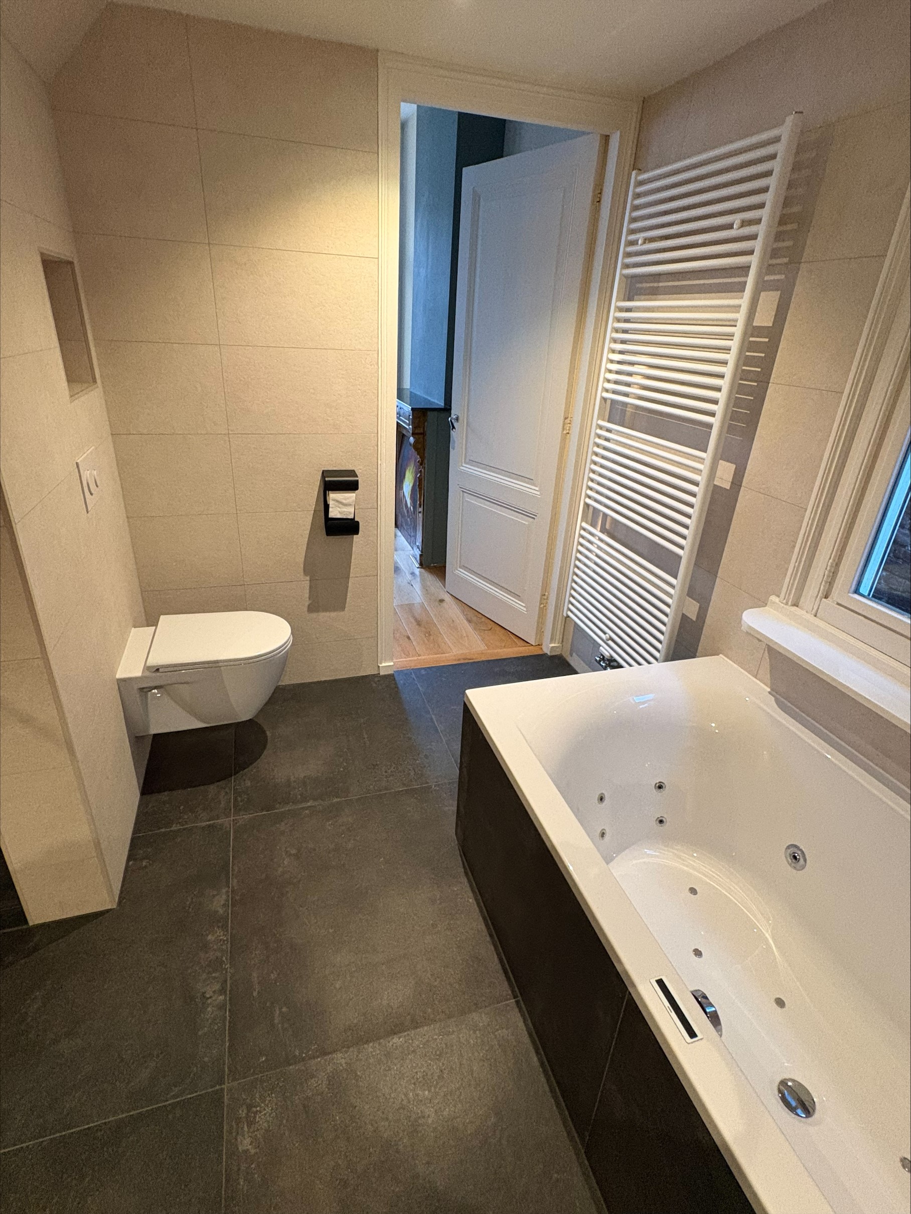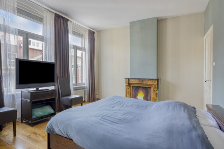 De hoofdslaapkamer gelegen aan de voorzijde (circa 21 m²) beschikt over eiken vloerdelen, een sierschouw en een klein balkon. De ruime moderne badkamer (circa 14 m²) is bereikbaar vanuit zowel de overloop als de slaapkamer en is in 2021 volledig vernieuwd. Deze ruimte is voorzien van een royaal ligbad met whirlpool, vloerverwarming, ruime inloopdouche met sunshower, glazen wand, meubel met dubbele wastafel, losse kolomkast en 2e toilet.