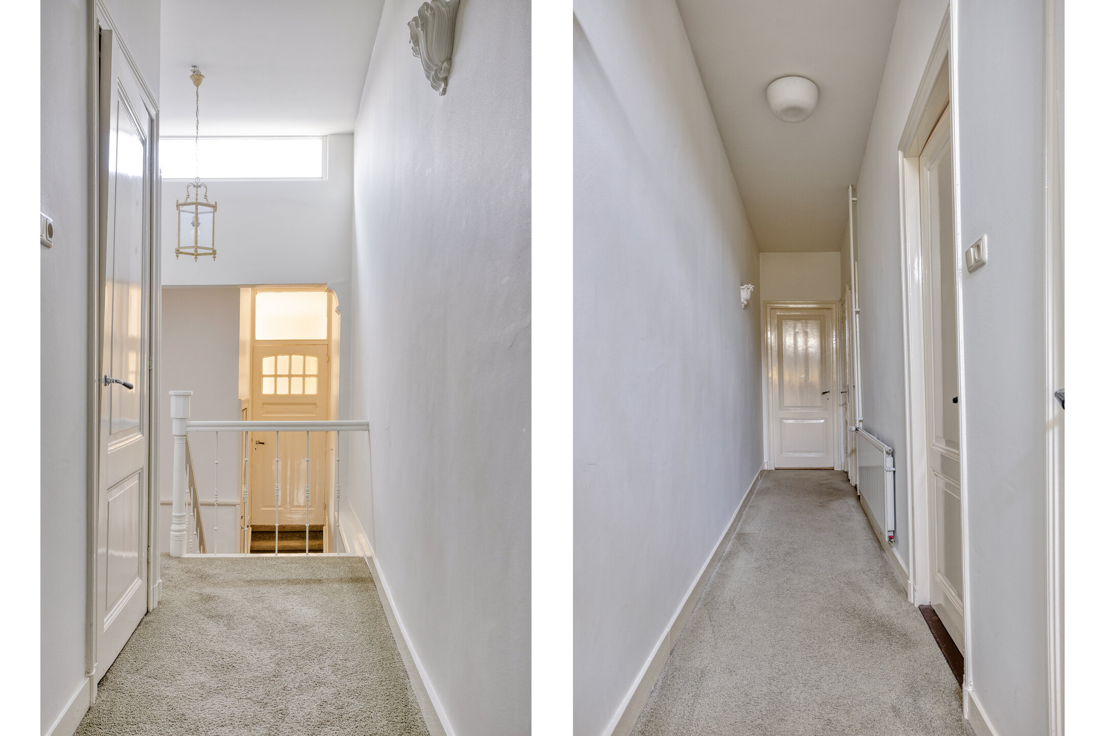 De royale overloop met fraaie bordestrap geeft toegang tot vier slaapkamers en de badkamer.