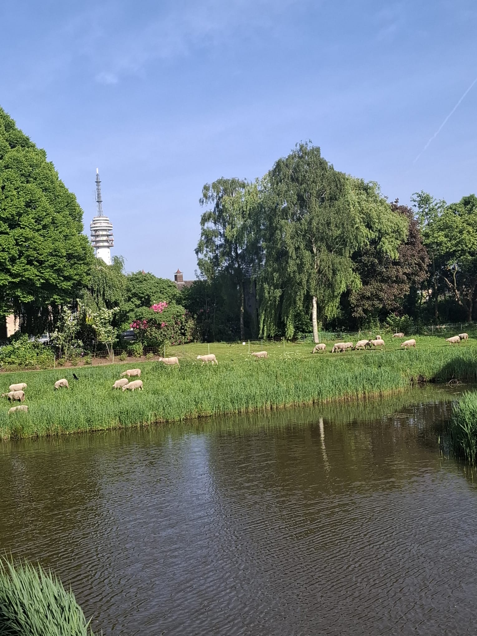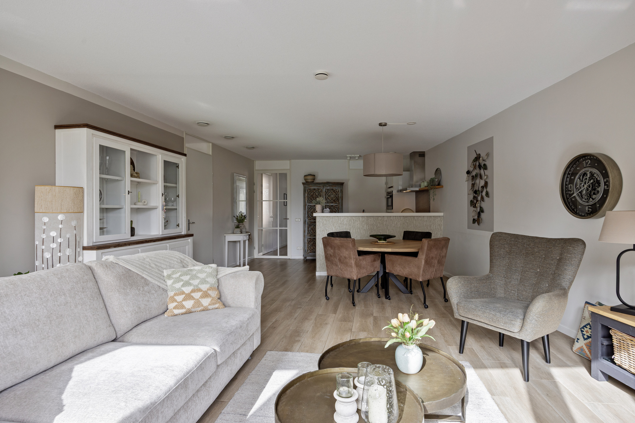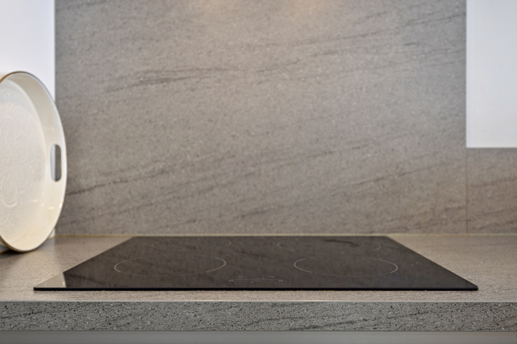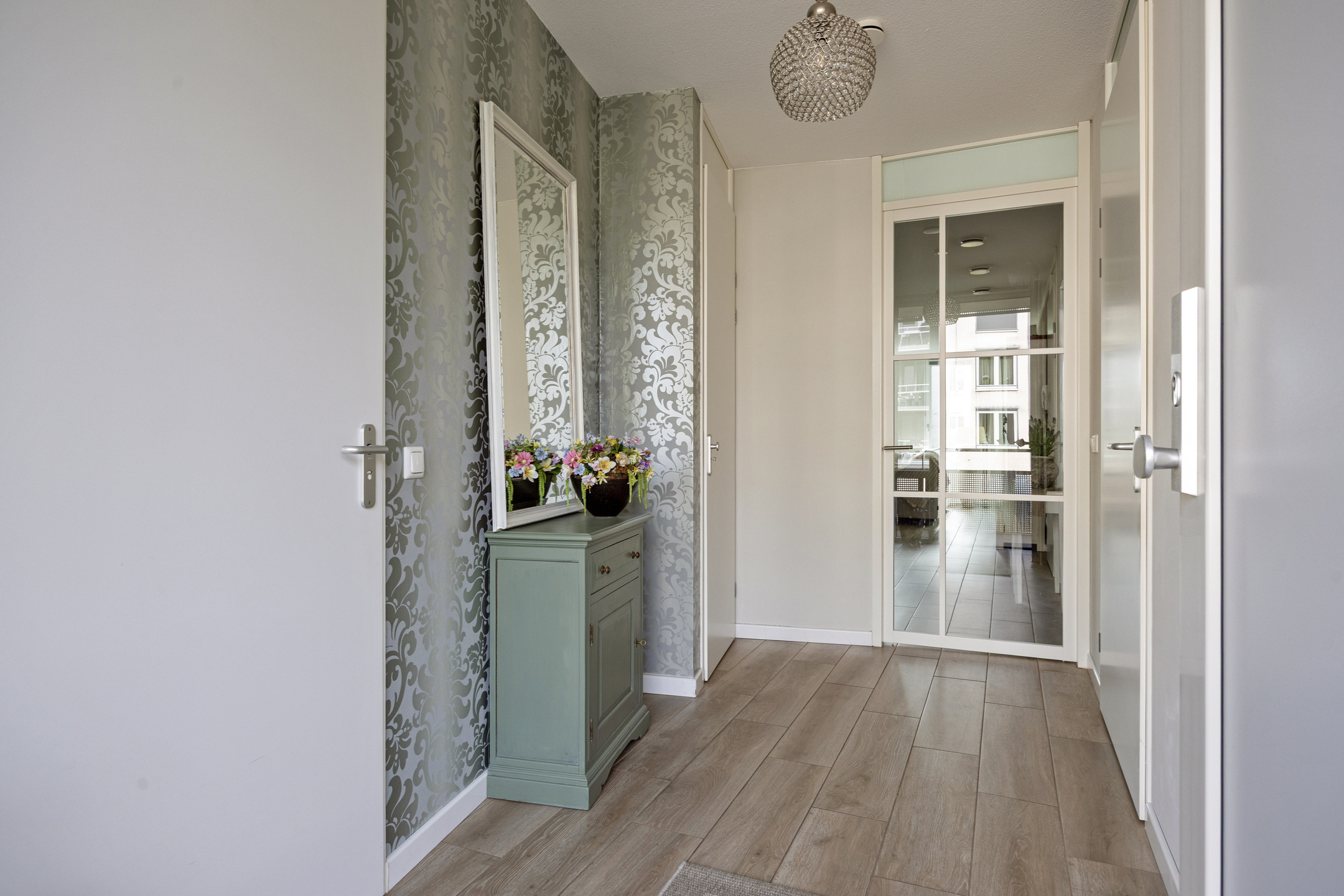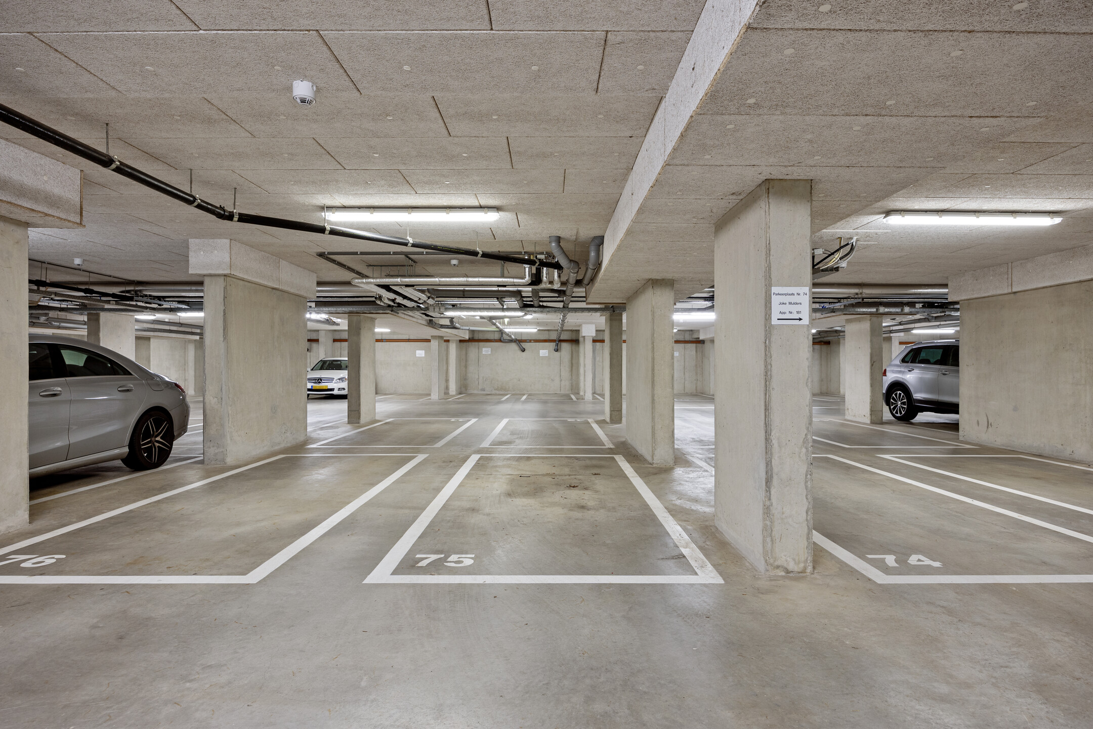 U betreedt het appartement via de centrale hal met brievenbussen, intercom en videosysteem, met toegang via trap of lift. Bij binnenkomst vindt u de hal met modern toilet en toegang tot de tweede slaapkamer (ca. 12 m²). De lichte woonkamer met aluminium schuifpui naar het balkon is, samen met de open keuken, ca. 38 m² groot. De L-vormige keuken is modern ingericht en uitgerust met koelkast (2024), afzuigkap, vaatwasser (2025), inductiekookplaat en combi-oven.