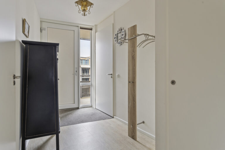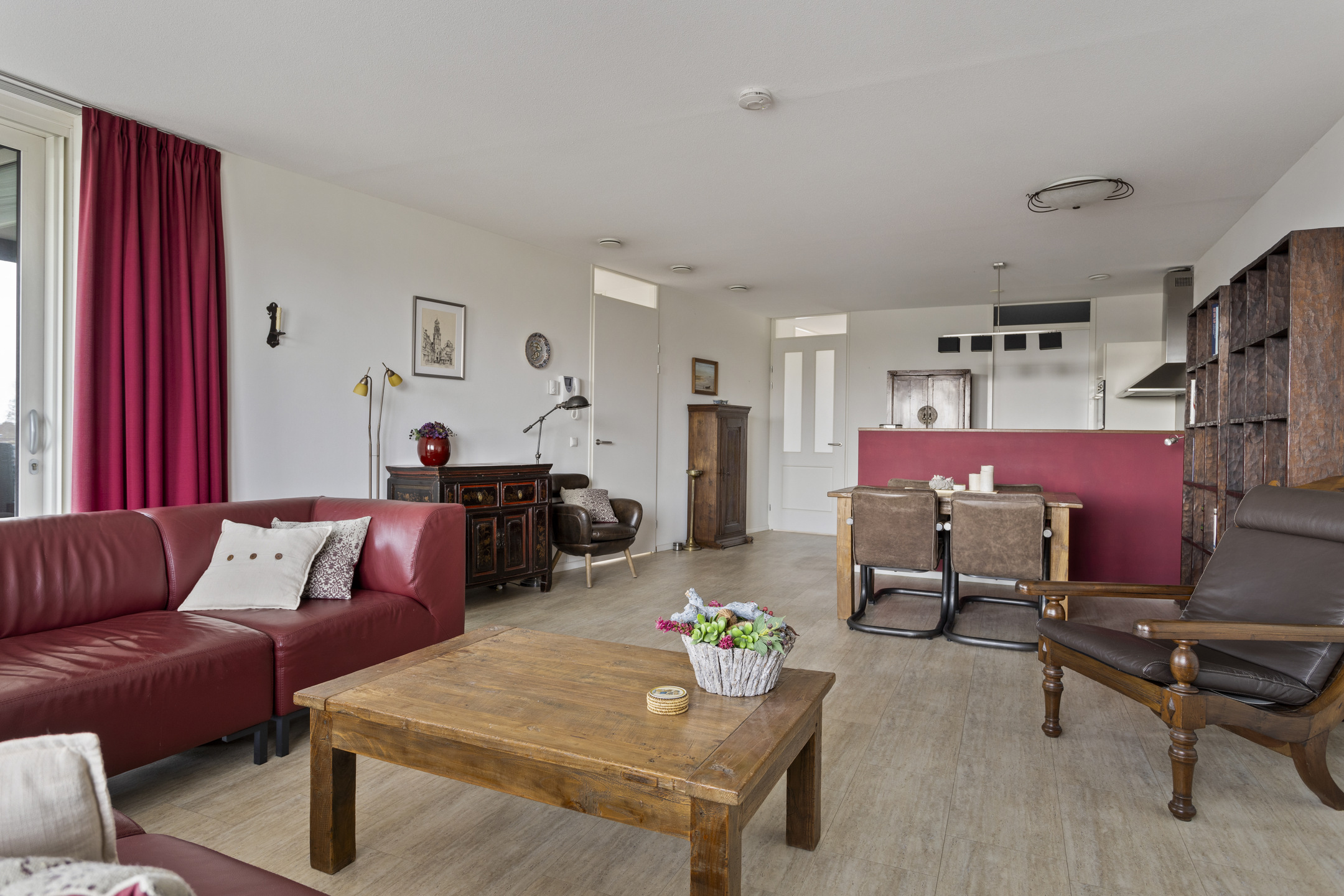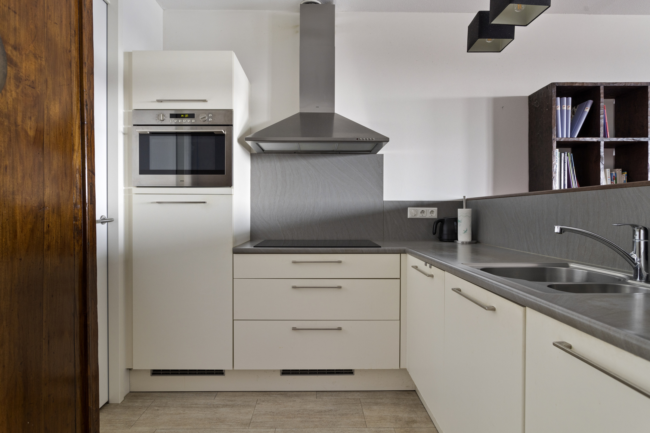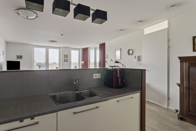 Via de nette centrale entree met intercom, video-installatie, lift en trappenhuis bereikt u het appartement. Binnen treft u een lichte en ruime woonkamer met moderne open keuken, uitgevoerd in een stijlvolle L-opstelling en voorzien van diverse inbouwapparatuur, zoals een inductiekookplaat, vaatwasser, oven en koelkast. De woonkamer en keuken samen hebben een oppervlakte van ca. 38 m² en zijn afgewerkt met een fraaie pvc-vloer. De grote schuifpui zorgt voor veel lichtinval en geeft directe toegang tot het zonnige balkon.