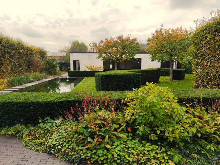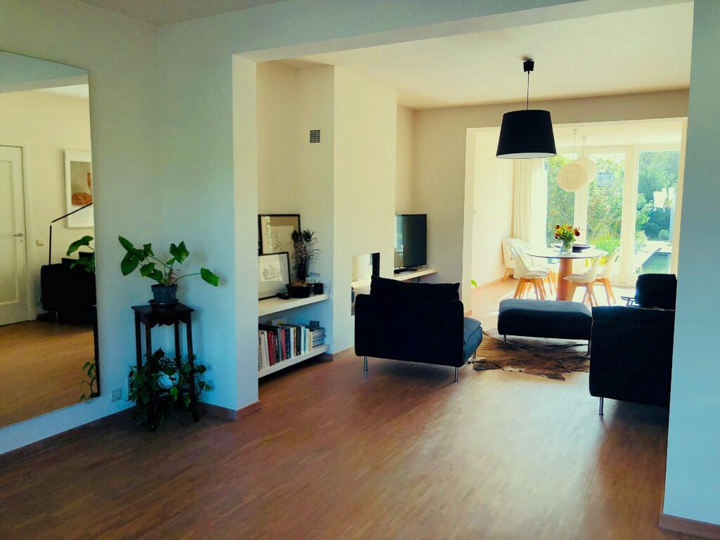Huis te koop Essen : gerenoveerd herenhuis met o.a. 4 grote slaapkamers, groot bijgebouw van 95 m², zwemvijver in een door een architect aangelegde tuin.