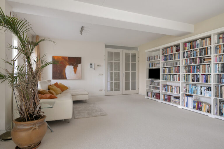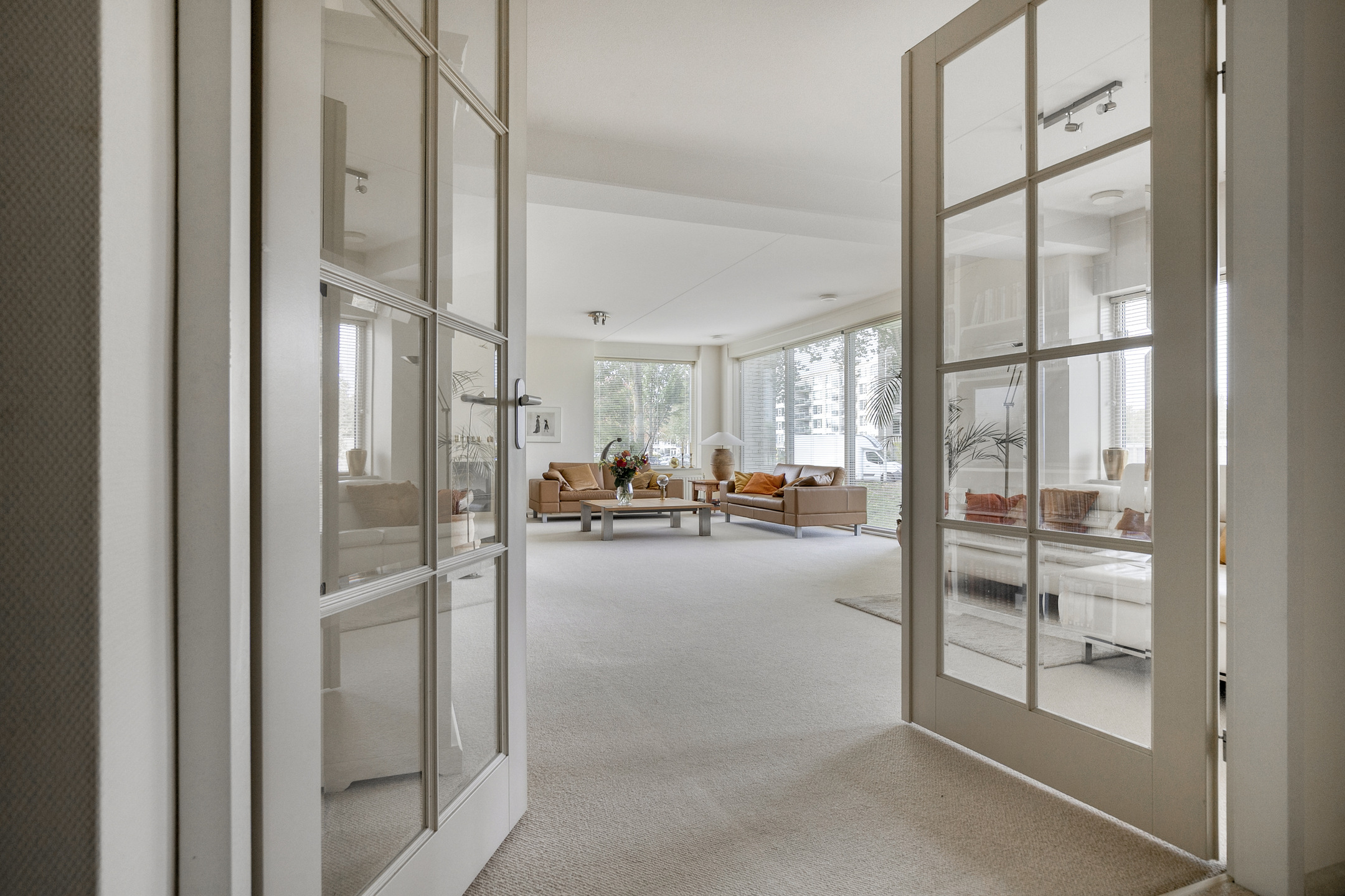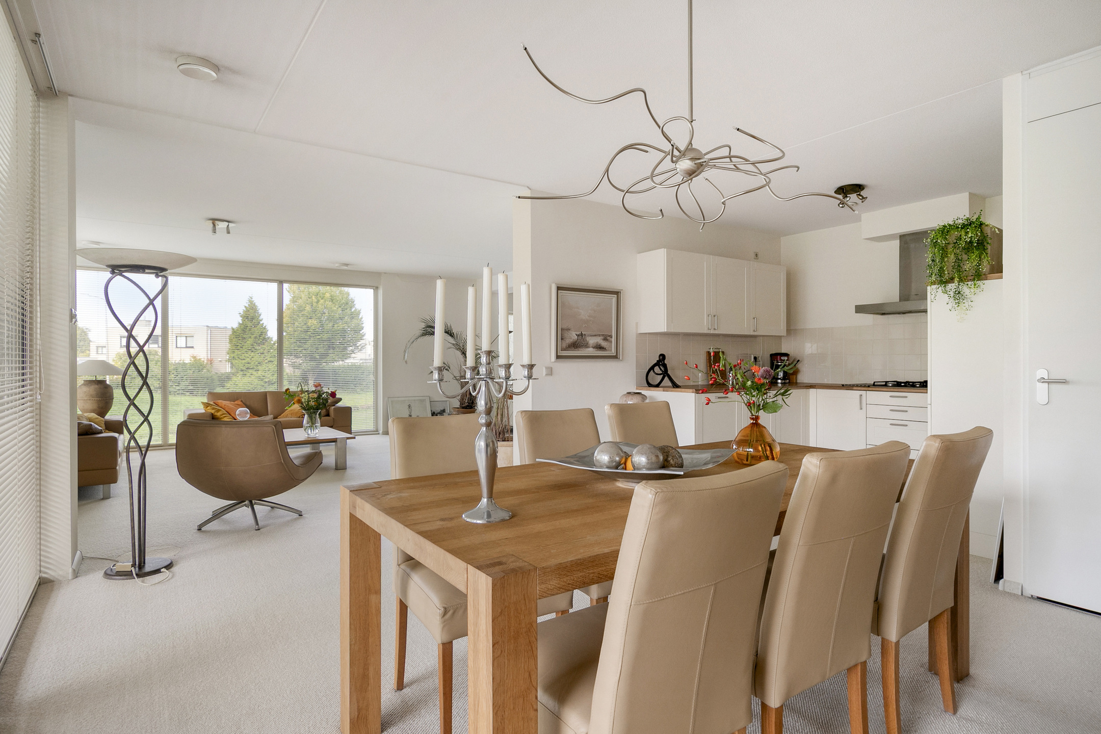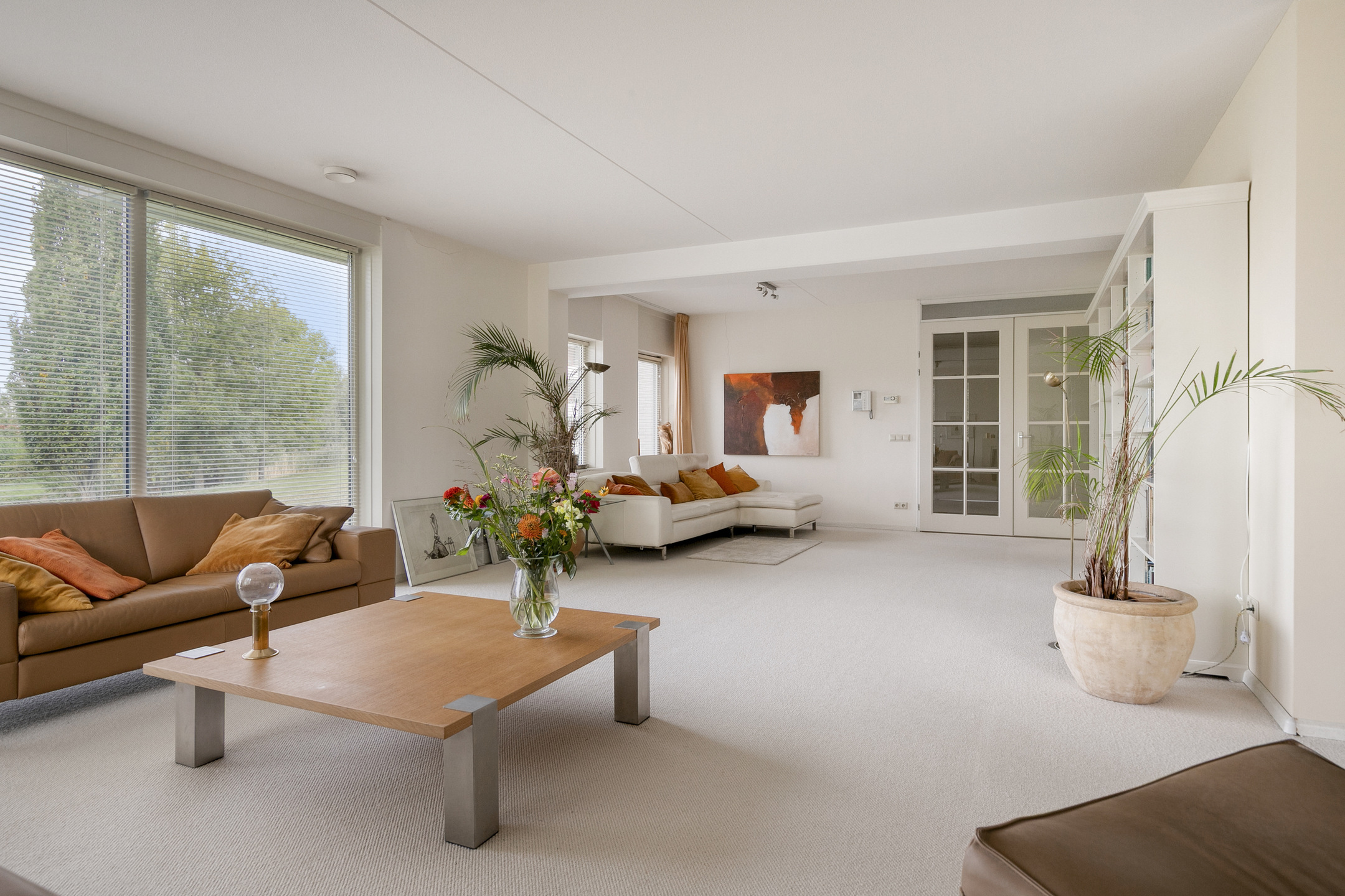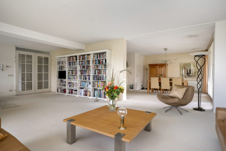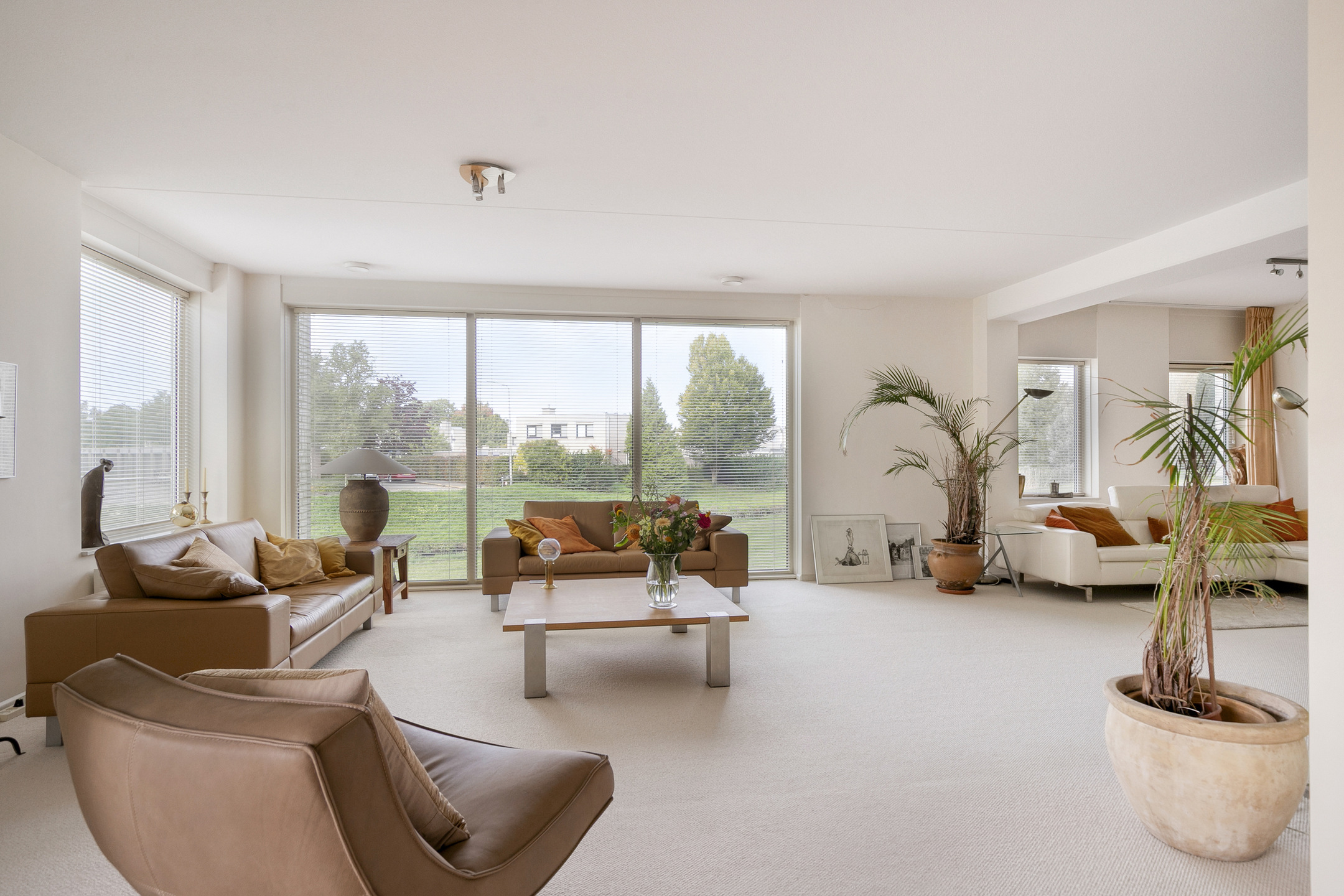 De ruime woonkamer vormt het hart van het appartement. Hier is plaats voor een comfortabele zithoek én een gezellige loungeplek, naast een aparte eetruimte. De grote raampartijen, die van vloer tot plafond reiken, zorgen voor een overvloed aan daglicht en creëren een prettige, open sfeer. Vanuit de eetkamer is er toegang tot het ruime, op het zuiden gelegen balkon, waar je optimaal van de zon kunt genieten.