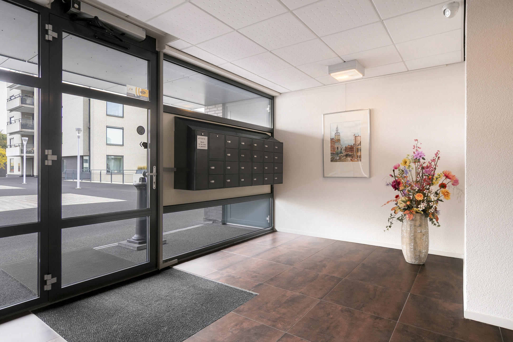 Centrale entrée met brievenbussen en bellentableau met videofoon;