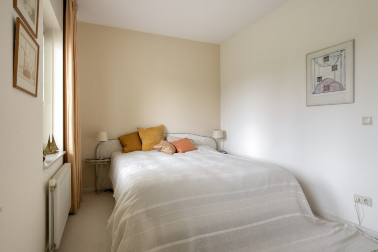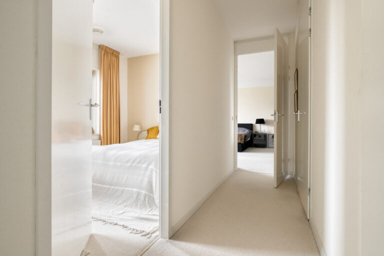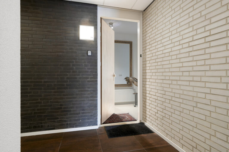 Zodra je binnenstapt, valt direct de royale indeling en het gevoel van ruimte op. De brede hal biedt toegang tot het toilet, de meterkast, de ruime badkamer en twee comfortabele slaapkamers. In de hal bevindt zich ook een zeer royale berging met ruimte voor de garderobe en aansluitingen voor de wasmachine en wasdroger. Tevens is hier de cv-combiketel opgesteld.