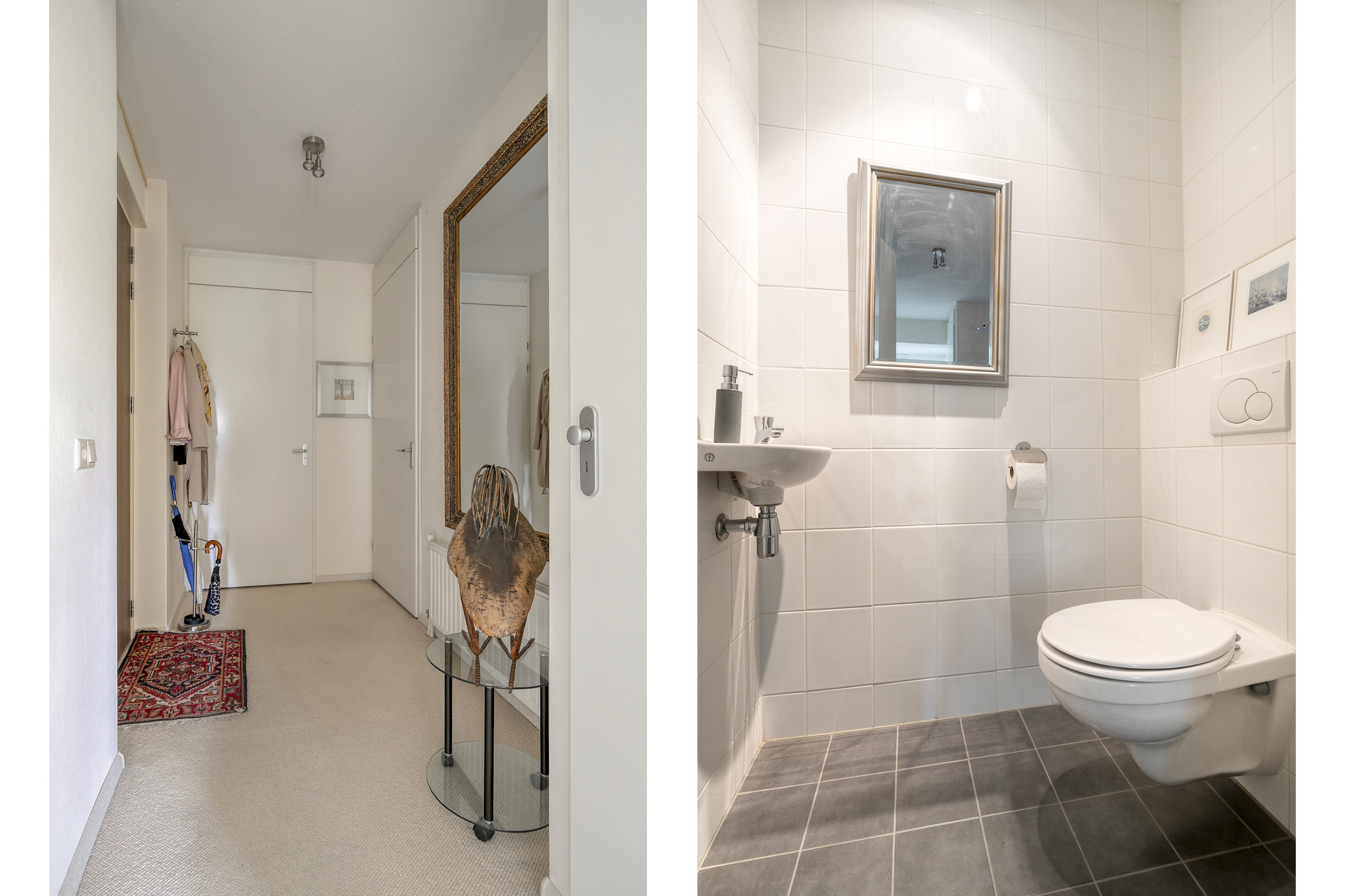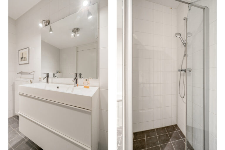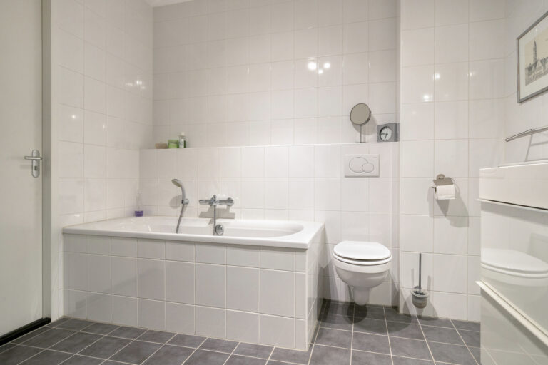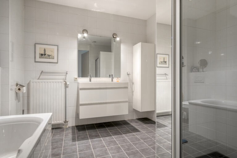 De moderne badkamer is compleet uitgerust met een ligbad, aparte douche, stijlvol badkamermeubel en een tweede toilet. Daarnaast is er in de hal een apart gastentoilet, zodat bezoekers niet van de badkamer gebruik hoeven te maken. Alles is verzorgd afgewerkt en praktisch ingedeeld.