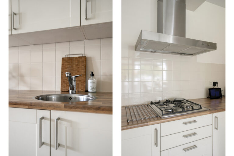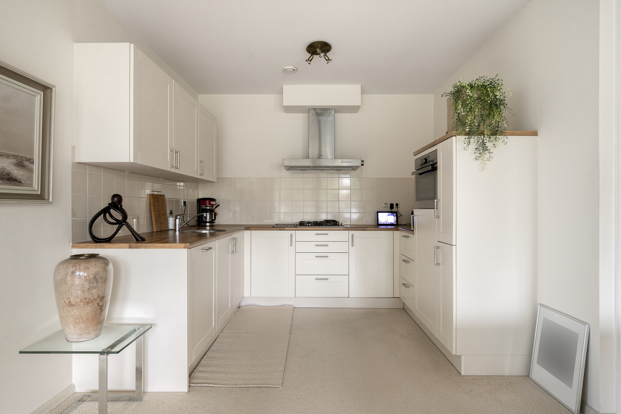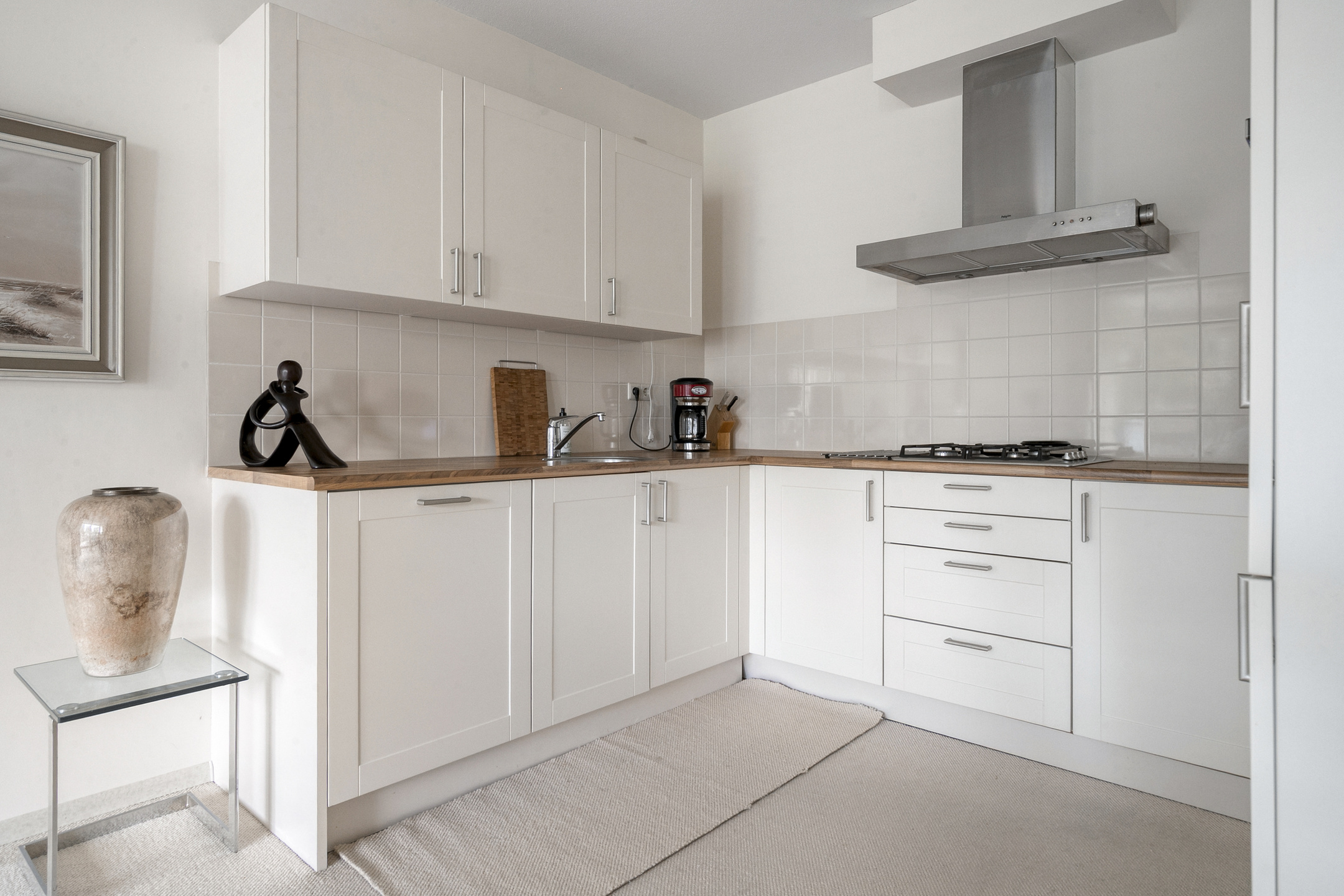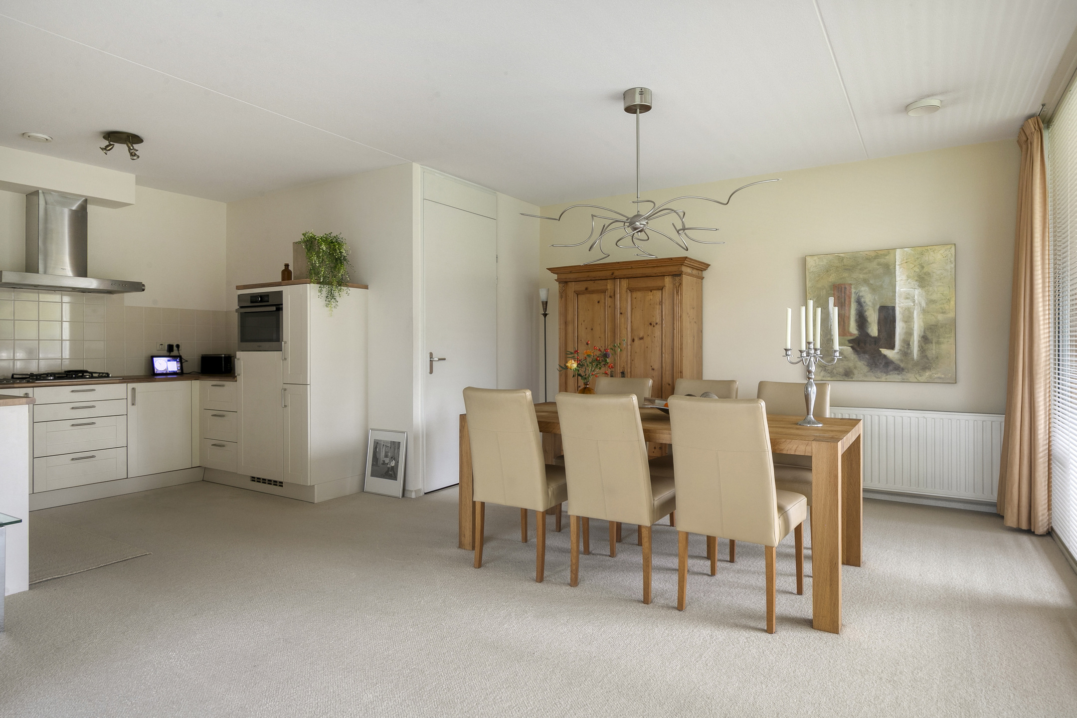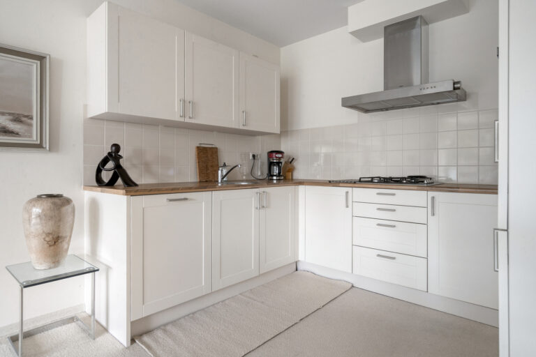 De halfopen keuken is praktisch ingedeeld en biedt volop werk- en bergruimte. De keuken is uitgerust met een gasfornuis, afzuigkap, vaatwasser, combi-oven en koelkast. Aangrenzend bevinden zich de eethoek en een ruime bijkeuken, wat deze ruimte zowel functioneel als gezellig maakt – ideaal voor koken én samen eten.