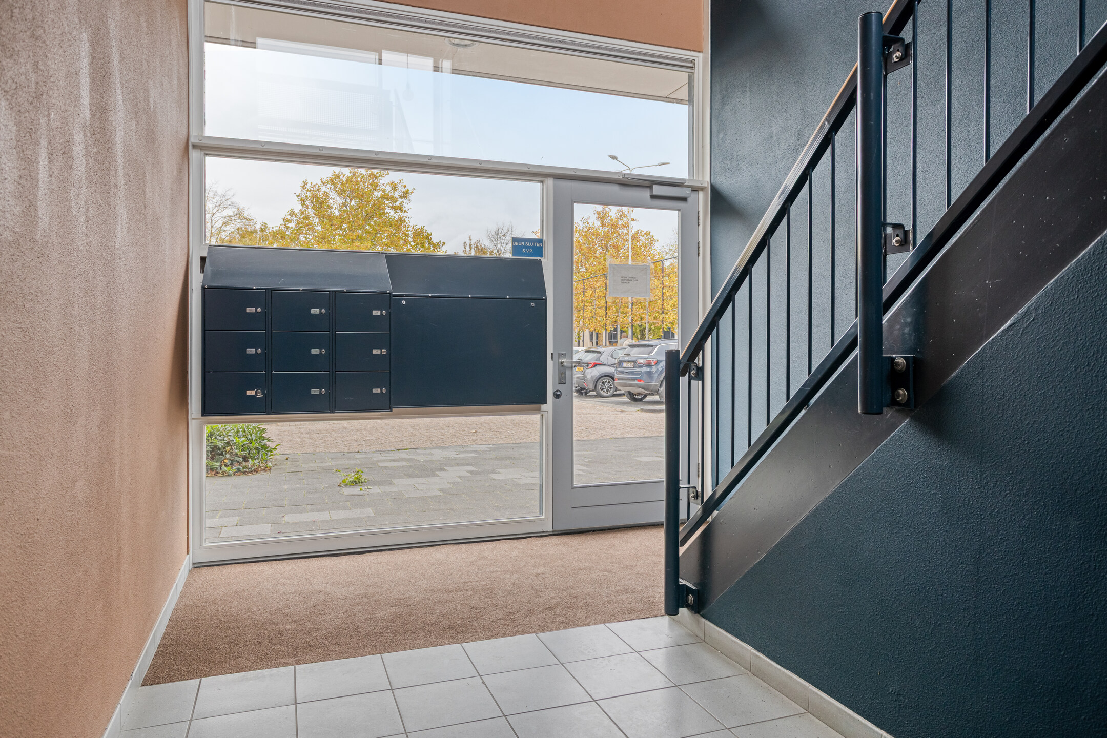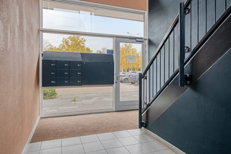 Entree appartementencomplex, met een bellentableau/videofoon en de brievenbussen.