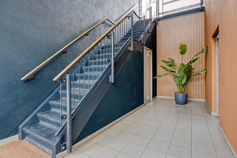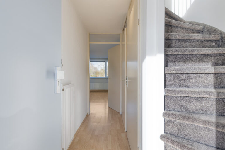 Hal met toegang tot de bergingen op de begane grond en trapopgang naar de 1ste verdieping.