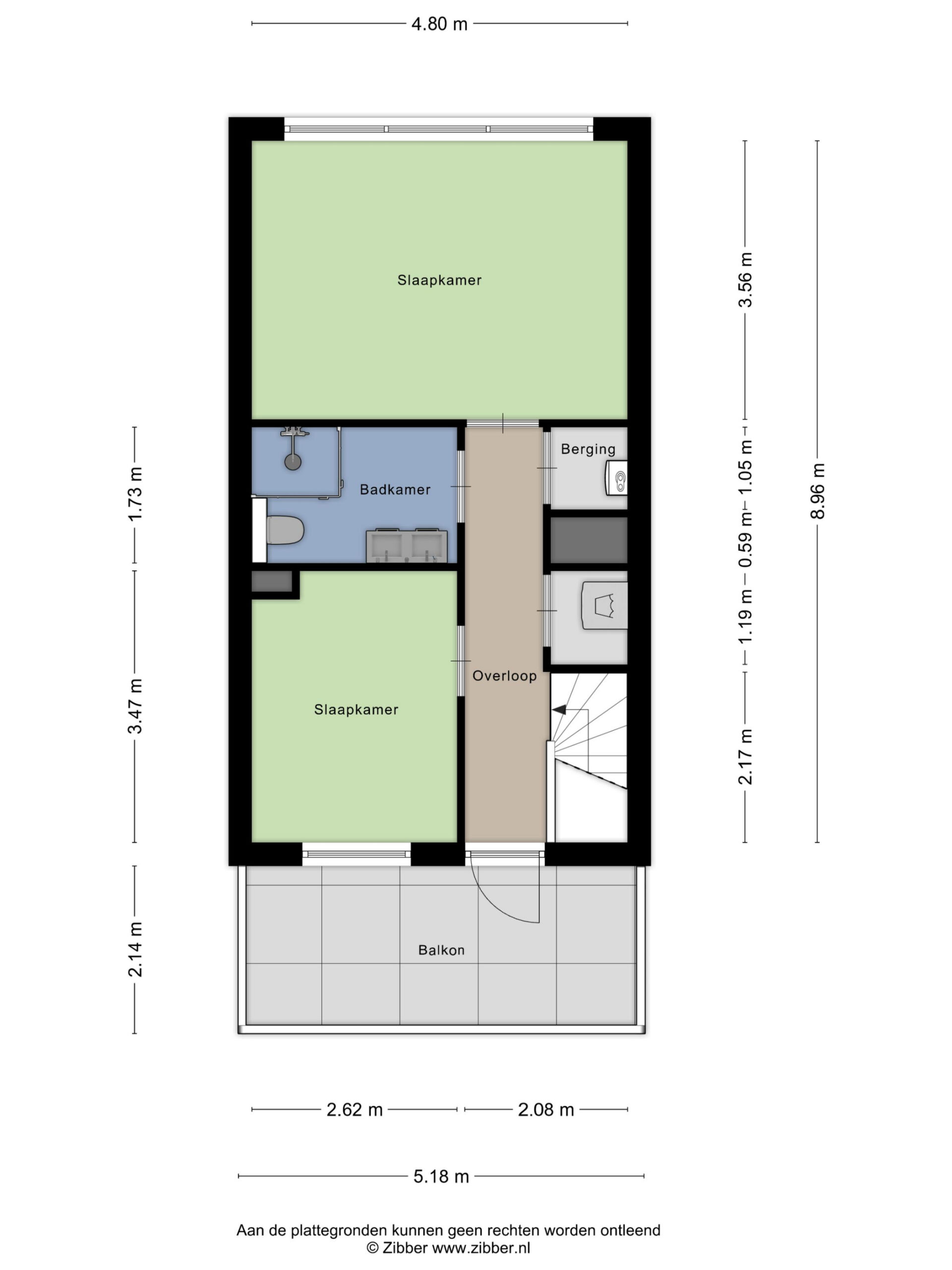 Twee lichte slaapkamers respectievelijk groot ca. 17,5 m2 en ca. 9 m2.