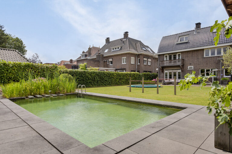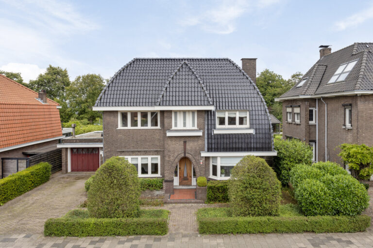 Ontdek deze karakteristieke vrijstaande stadsvilla, gebouwd in 1930 naar een ontwerp van architect Jacques Hurks. Dit monumentale pand met kenmerken van het zakelijk expressionisme is een stijlzuiver voorbeeld van de Amsterdamse School. Gesitueerd in één van Roosendaals meest unieke woonstraten, de Ludwigstraat, biedt deze indrukwekkende woning een royaal perceel van 940 m² en een woonoppervlak van ruim 330 m². Geniet van het buitenzwembad in de ruim opgezette en besloten achtertuin, op loopafstand van het centrum van Roosendaal, het NS-station en diverse scholen. Gelegen op een toplocatie in een rustige straat, combineert deze royale woning historische charme met hedendaags comfort.