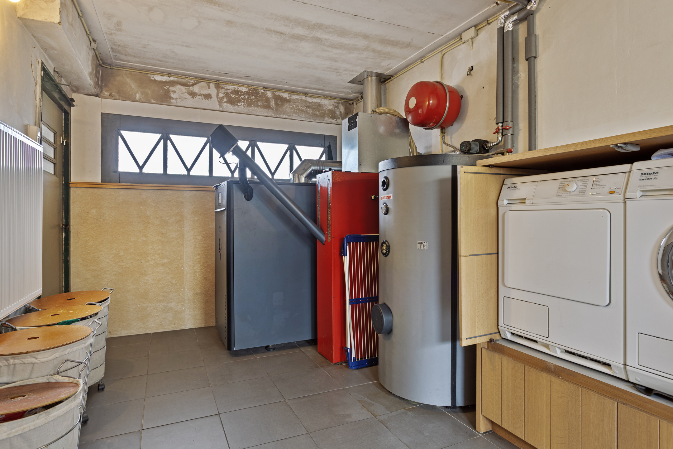 hot-fill)  in plaats van op kraanwater temperatuur. De bijkeuken biedt daarnaast plaats voor de pellet-CV kachel en de warm water boiler, welke de woning duurzaam verwarmt. De bijkeuken is ter plaatse van de zij ingang direct bereikbaar vanaf de oprit en biedt ook directe toegang tot de ruime achtertuin.