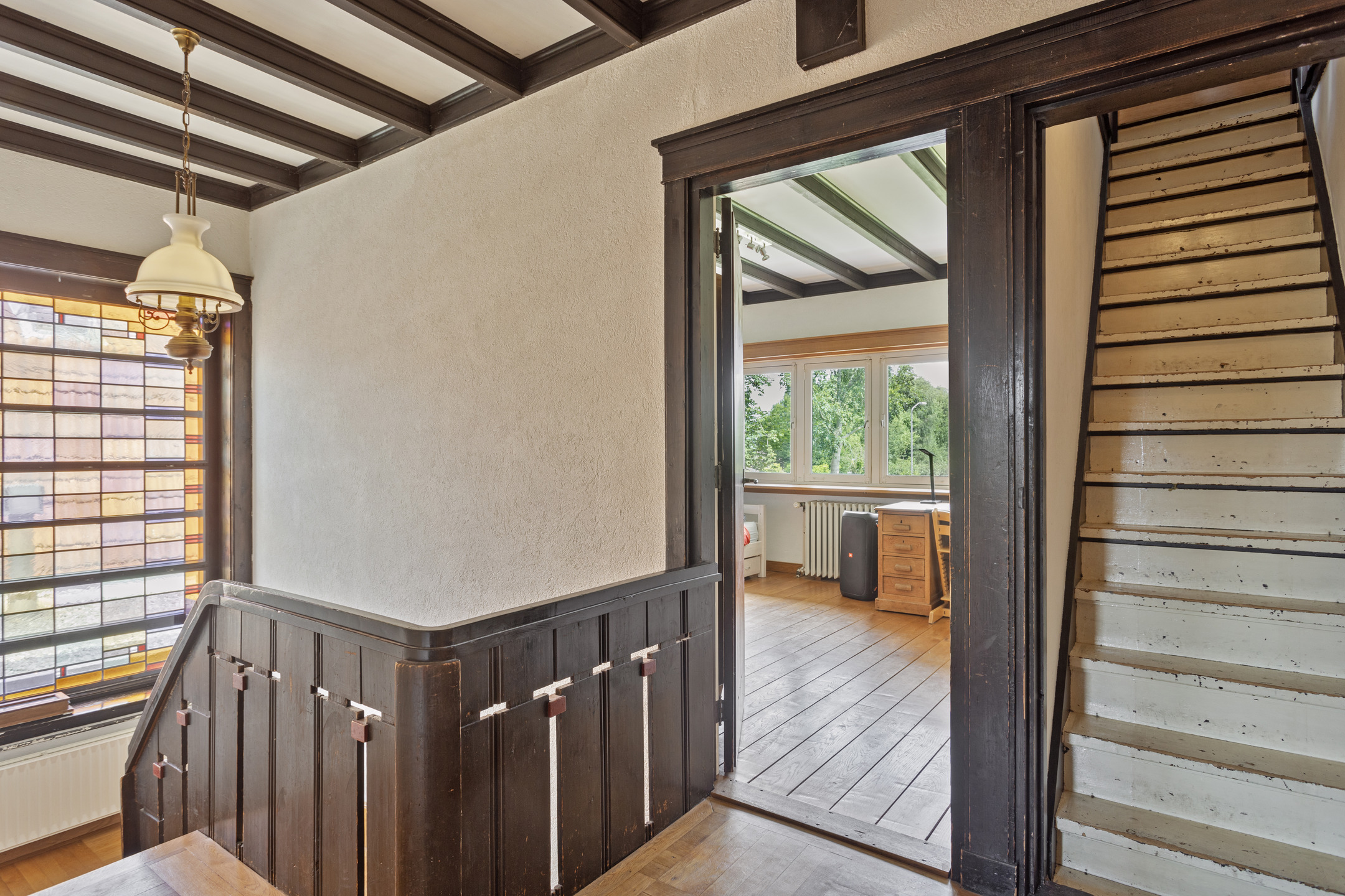 Centrale overloop met vaste trap naar de 2de verdieping.