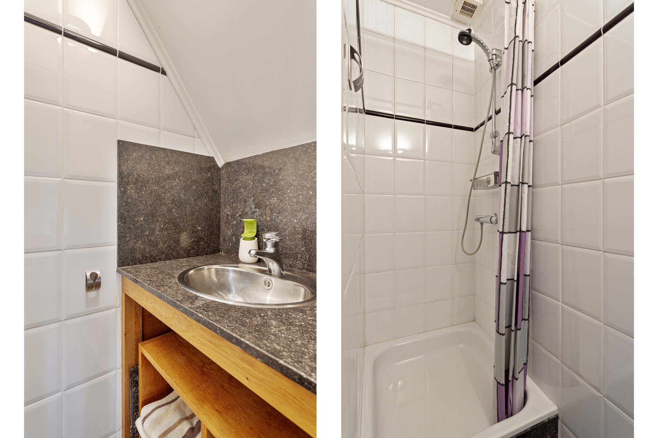 In  één van de slaapkamers is een tweede badkamer ingericht, voorzien van een wastafel en een douche.