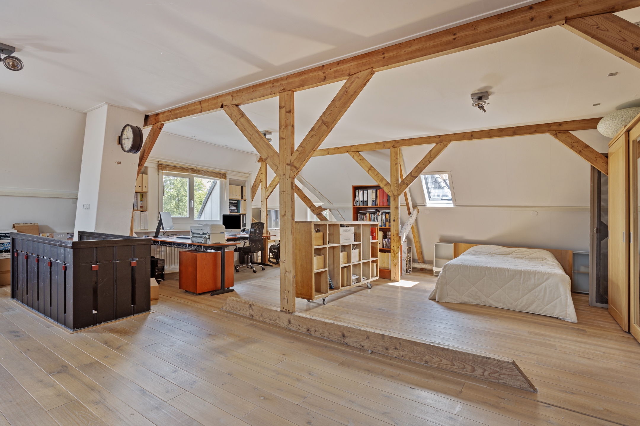 Naast een open studio opzet biedt deze zolder uiteraard ook ruime mogelijkheden om aparte (slaap-) vertrekken te creëren.