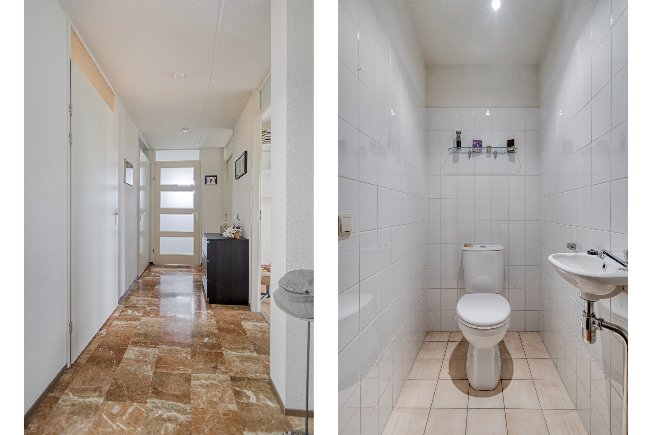 Met de lift of via het trappenhuis bereikt u de vierde (bovenste) verdieping. Hier bevindt zich een royale, lichte hal die toegang biedt tot de drie appartementen op deze etage. Via de entree betreedt u de ruime privéhal van het appartement, die toegang biedt tot de woonkamer met halfopen keuken, twee slaapkamers, het volledig betegelde toilet met fonteintje, de badkamer, de berging en de meterkast.