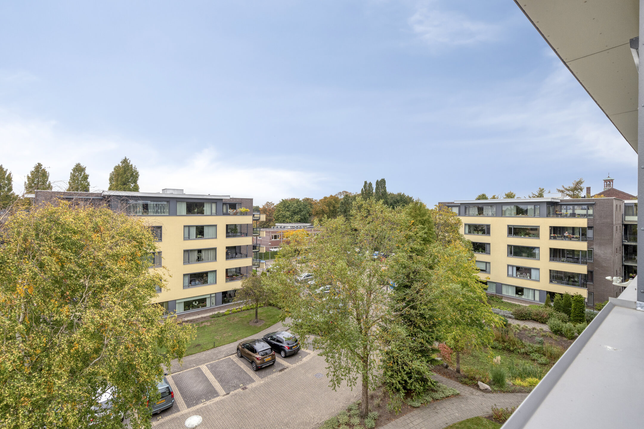 De hoofdentree aan de voorzijde van het complex is voorzien van een automatische deur en een recent vernieuwd video-/intercomsysteem. U kunt eenvoudig bezoekers binnenlaten en heeft altijd zicht op wie er aanbelt. Vanuit de nette centrale hal bereikt u met de lift of het trappenhuis de bovenste verdieping, waar dit rustige appartement zich bevindt. Daarnaast is er vanuit de entree directe toegang tot de gezamenlijke, fraai aangelegde tuin én tot de individuele bergingen op de begane grond. Het privéparkeerterrein achter het gebouw is afgesloten met een slagboom, die u met uw eigen afstandsbediening kunt openen. Uitrijden gebeurt automatisch – comfortabel en praktisch.