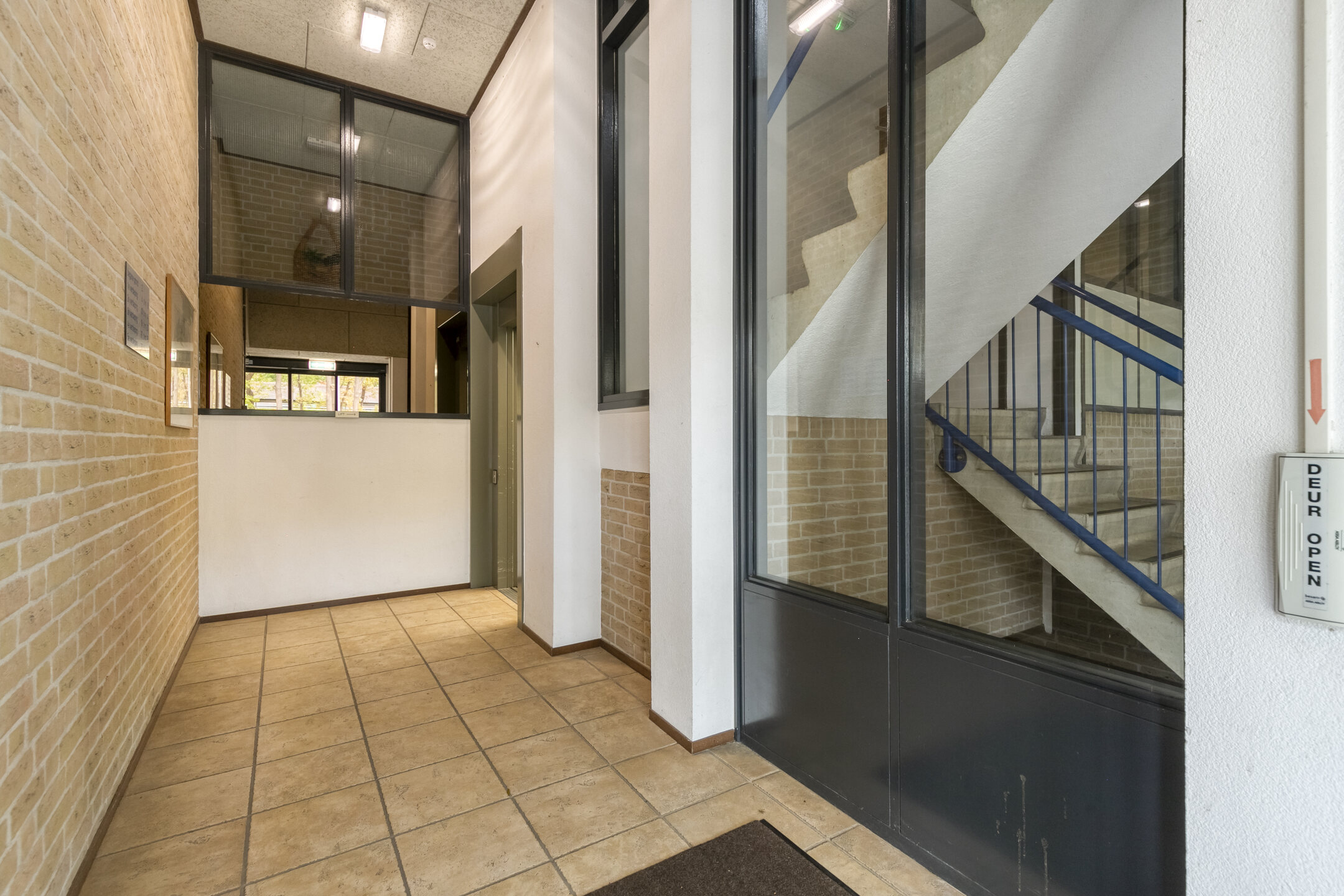 Representatieve entree met brievenbussen, lift en trappenhuis.