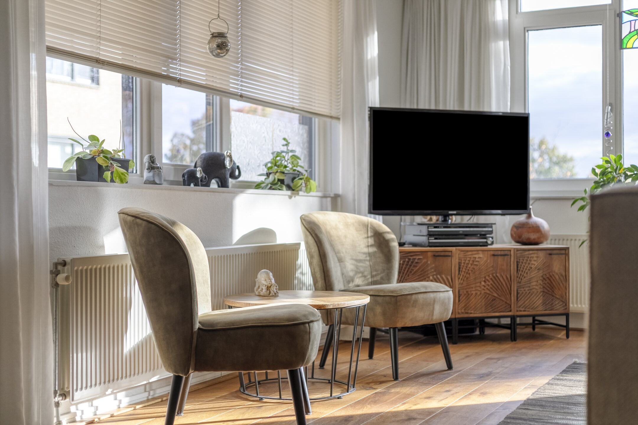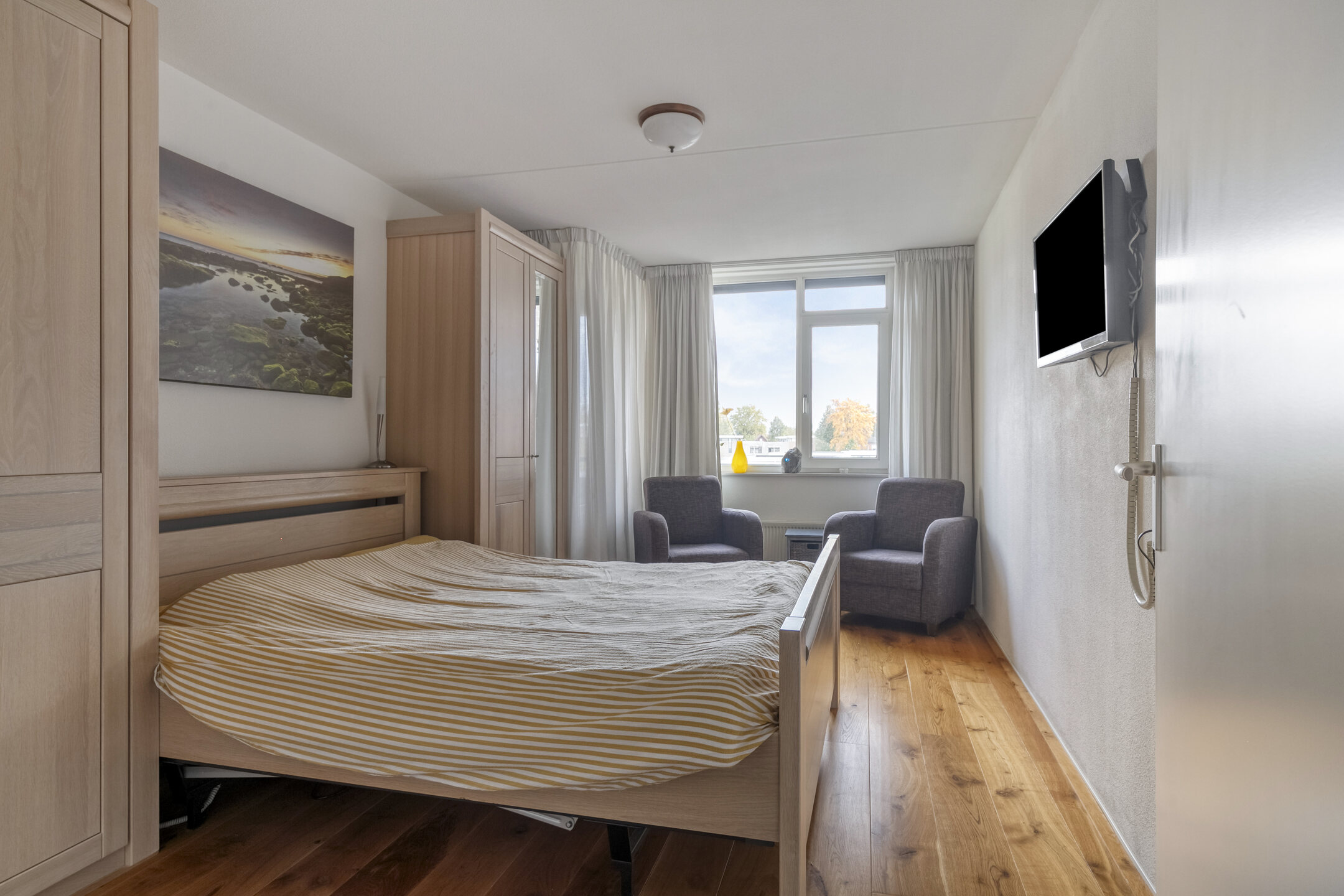 Massief houten vloer in het gehele appartement