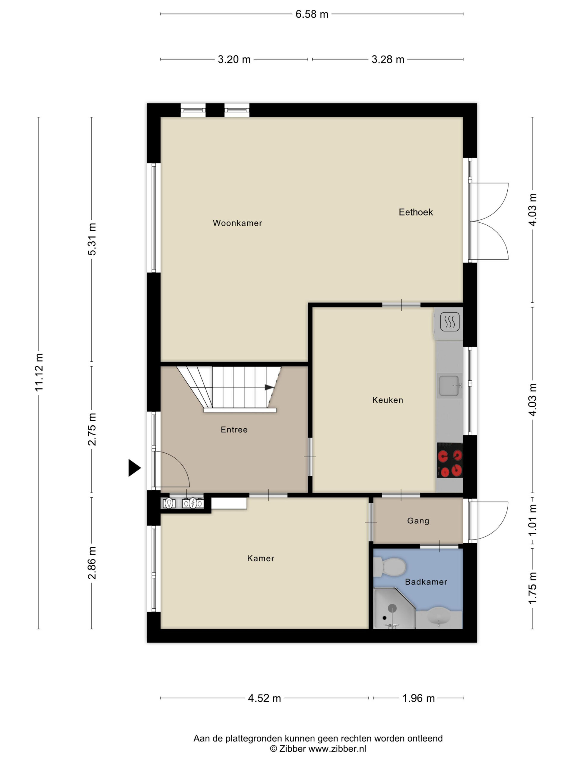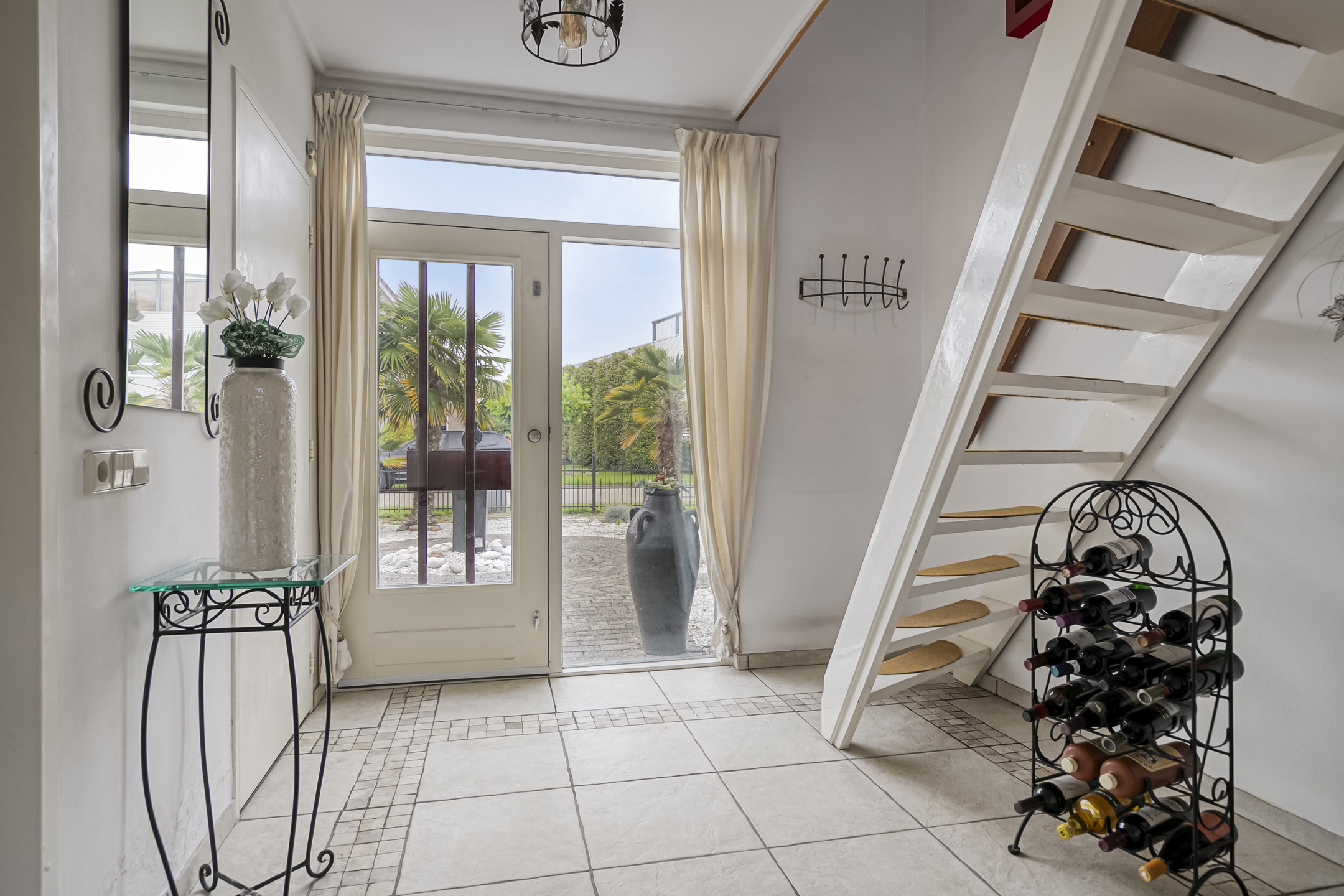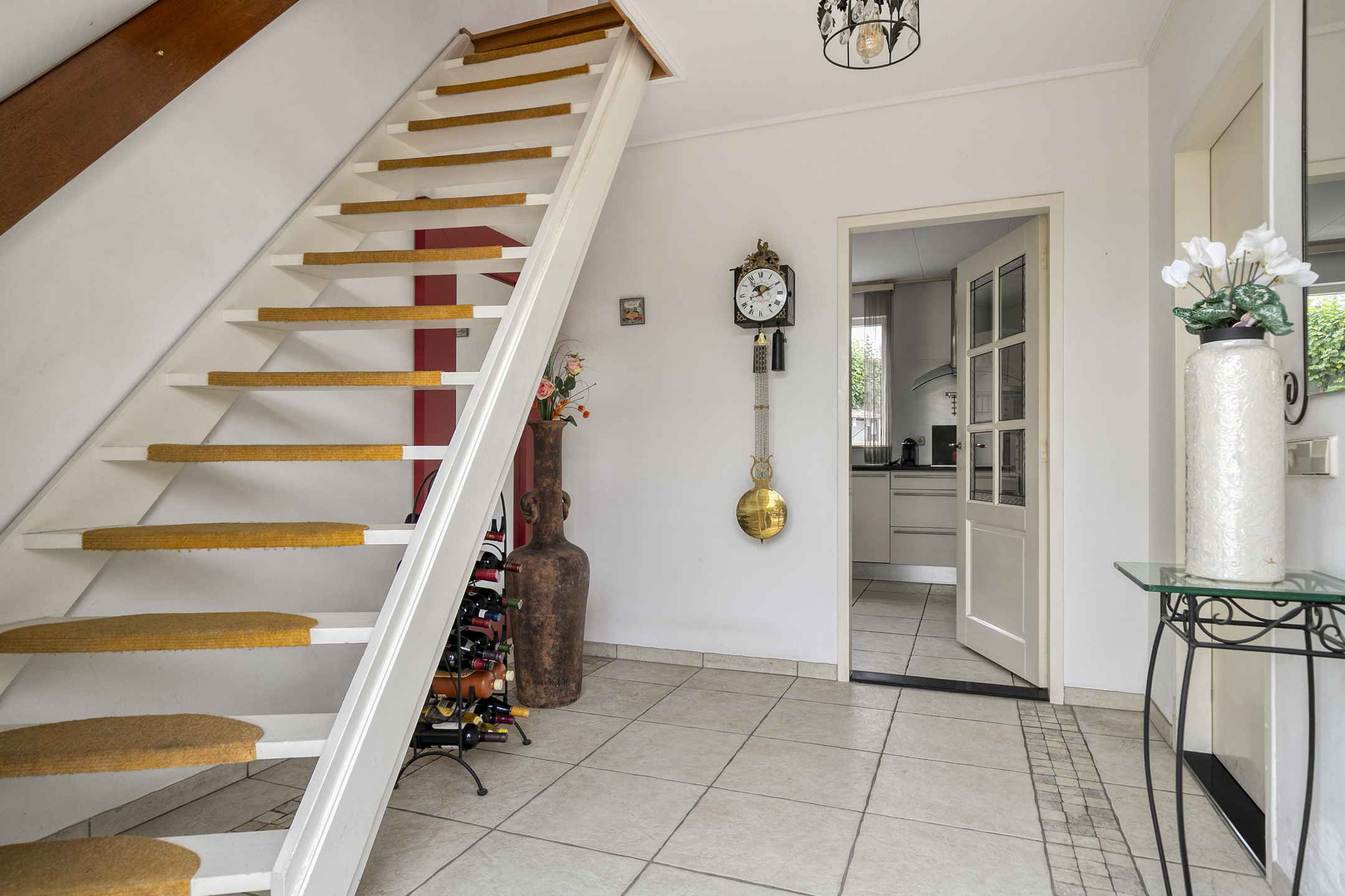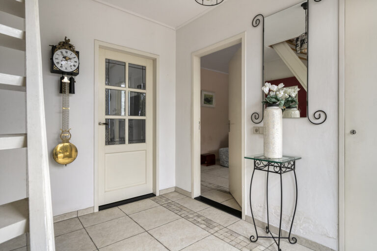 Entree met trapopgang naar de eerste verdieping en toegang tot de slaapkamer, keuken en woonkamer.