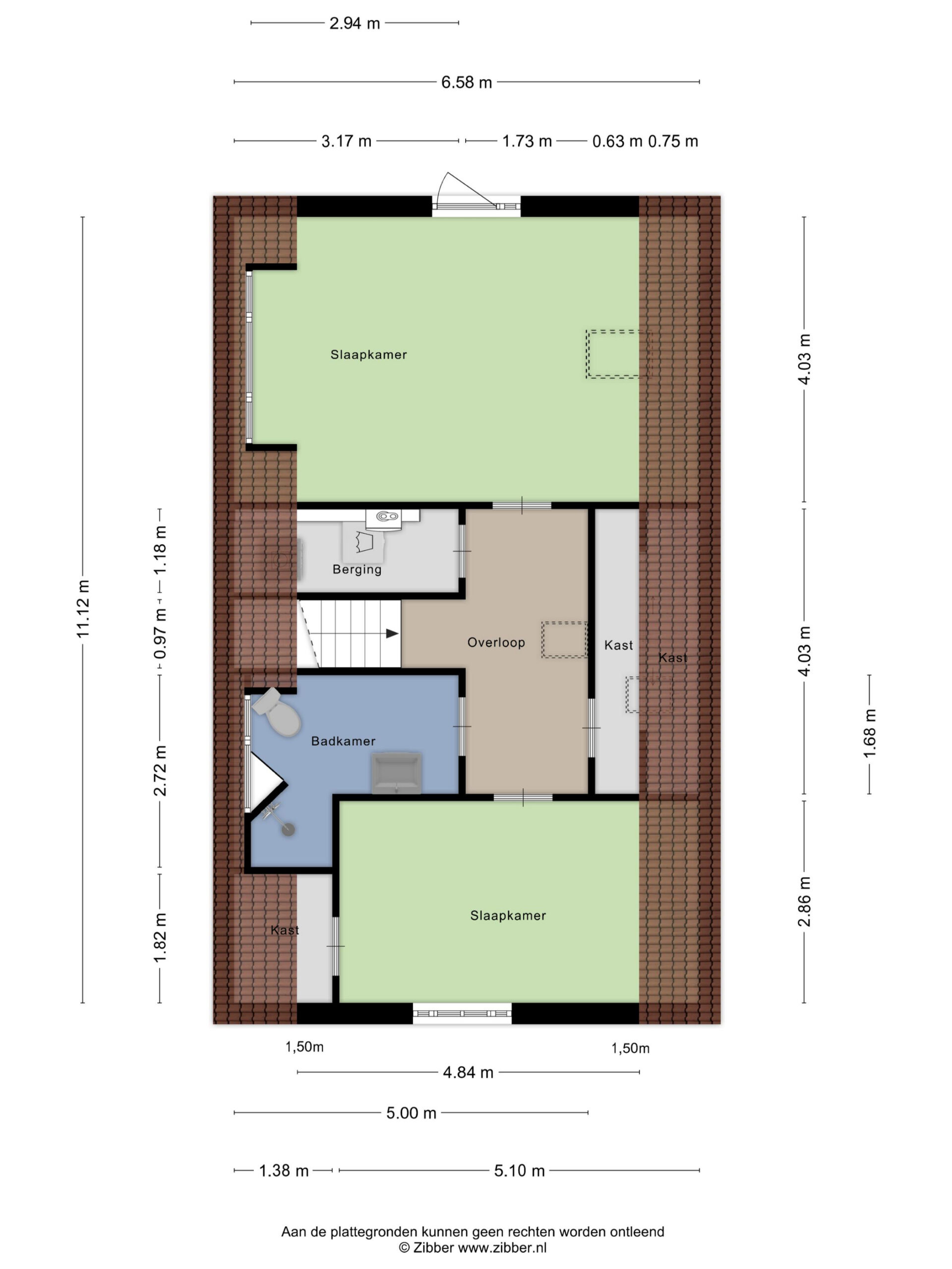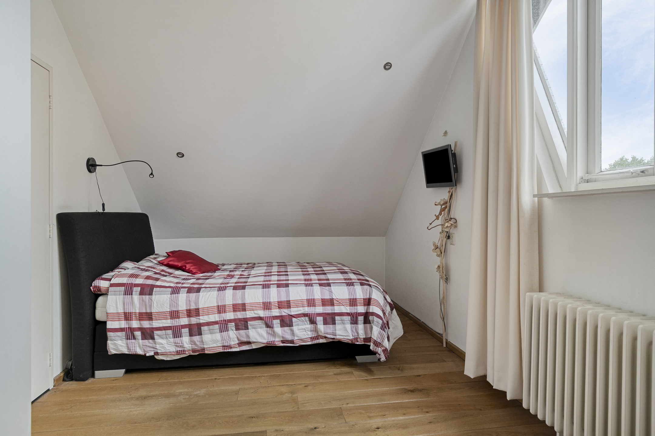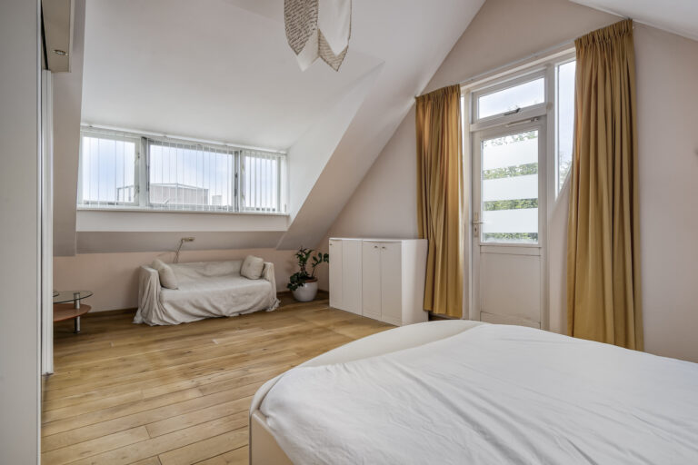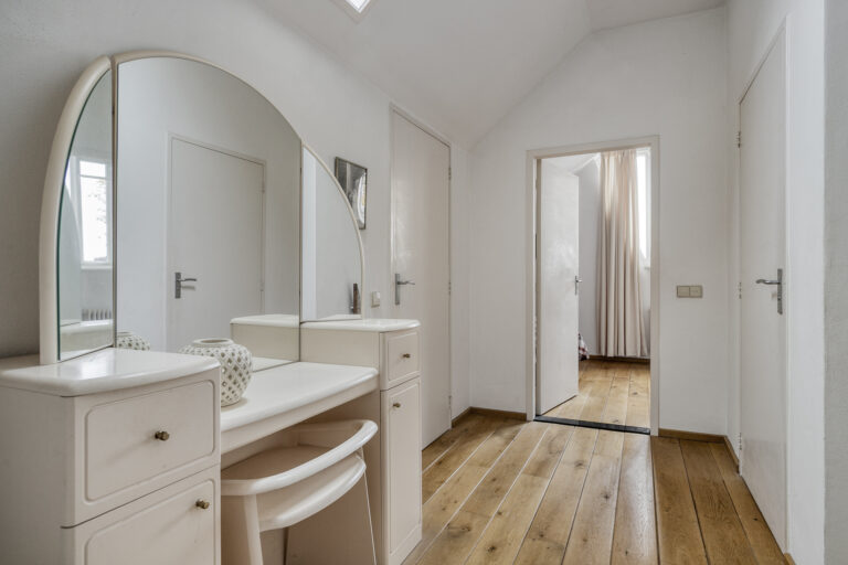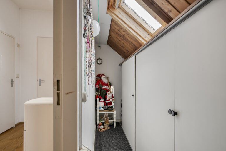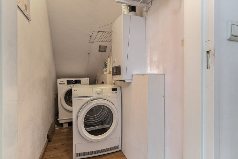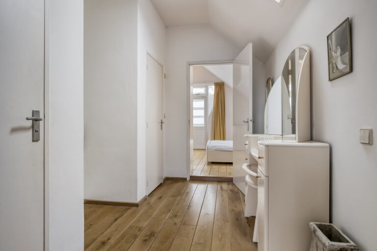 De ruime overloop biedt volop bergruimte en toegang tot twee goed bemeten slaapkamers. Daarnaast is er een aparte berging met de opstelplaats voor de cv-combiketel en aansluitingen voor zowel wasmachine als wasdroger.