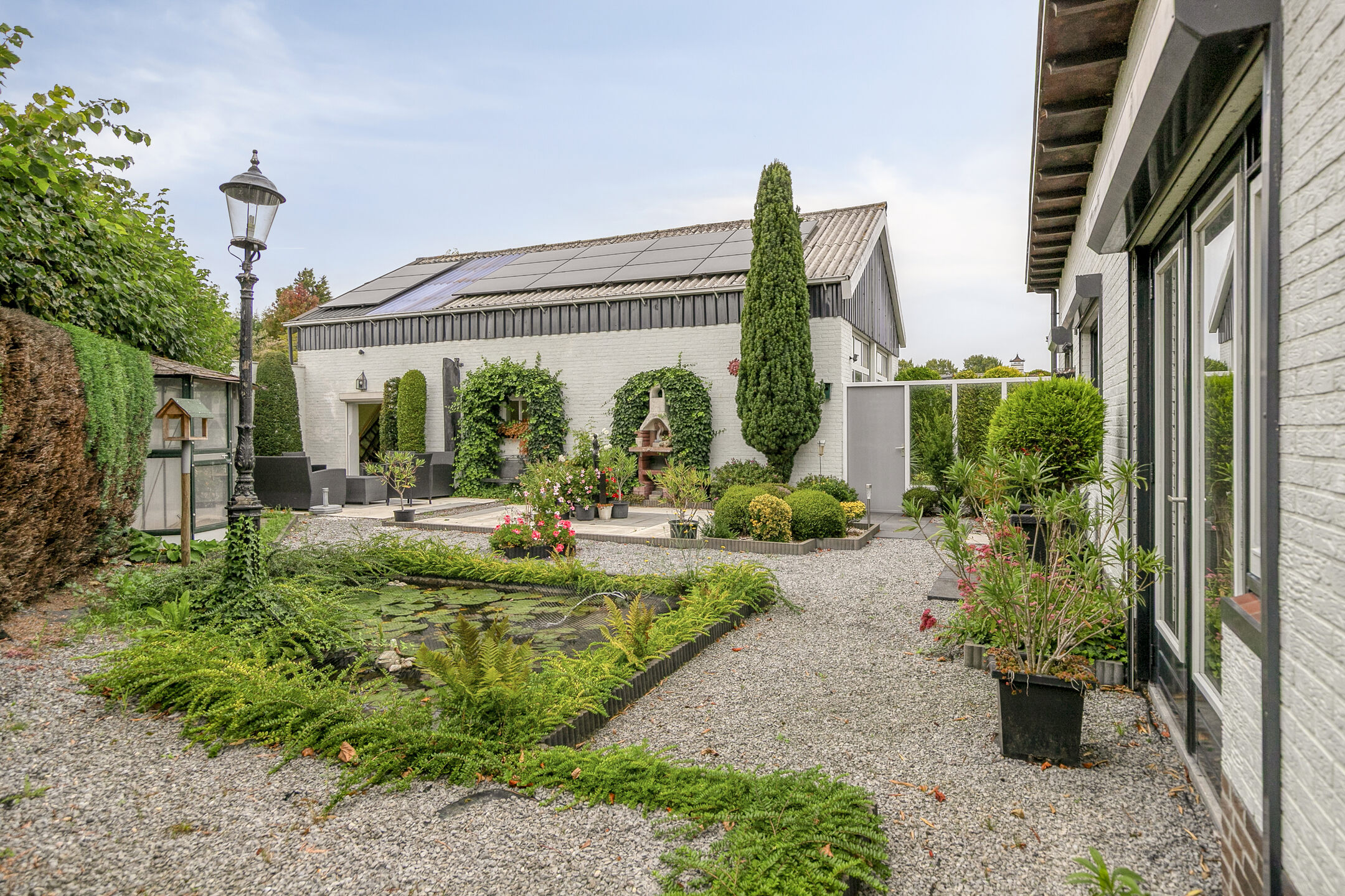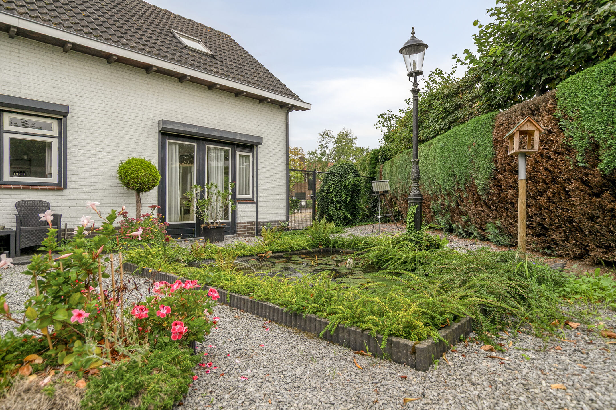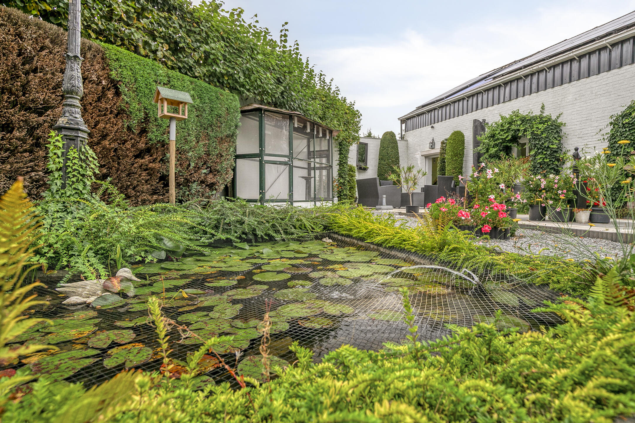 De fraai aangelegde tuin ligt rondom de woning en biedt op elk moment van de dag een prettige plek om van het buitenleven te genieten. De achtertuin is bijzonder sfeervol en biedt veel privacy. Deze is met zorg ingericht met een fraaie vijverpartij, diverse borders met beplanting en meerdere terrassen, waardoor er altijd wel een plek in de zon of schaduw te vinden is.