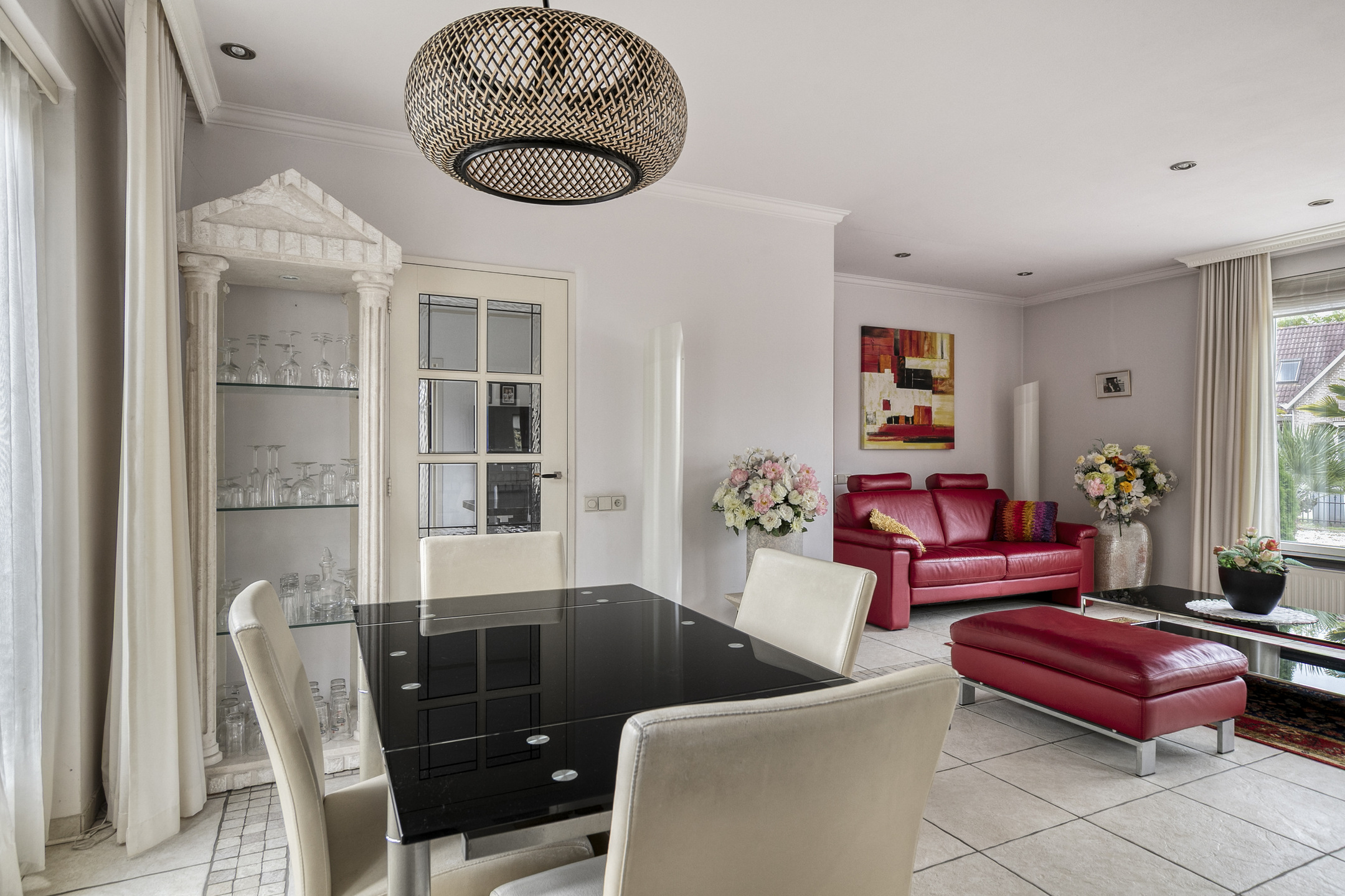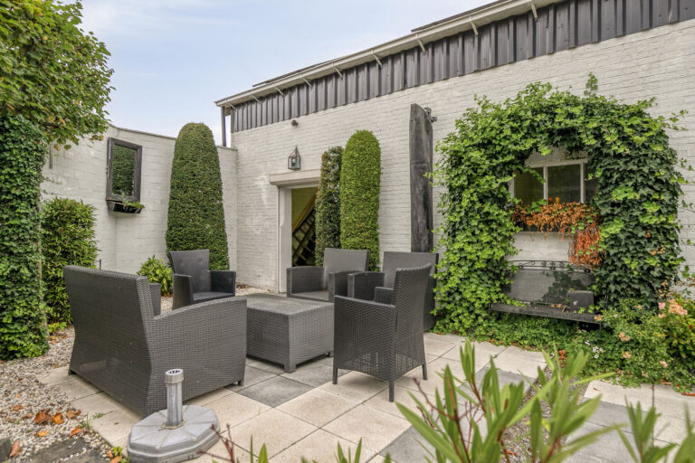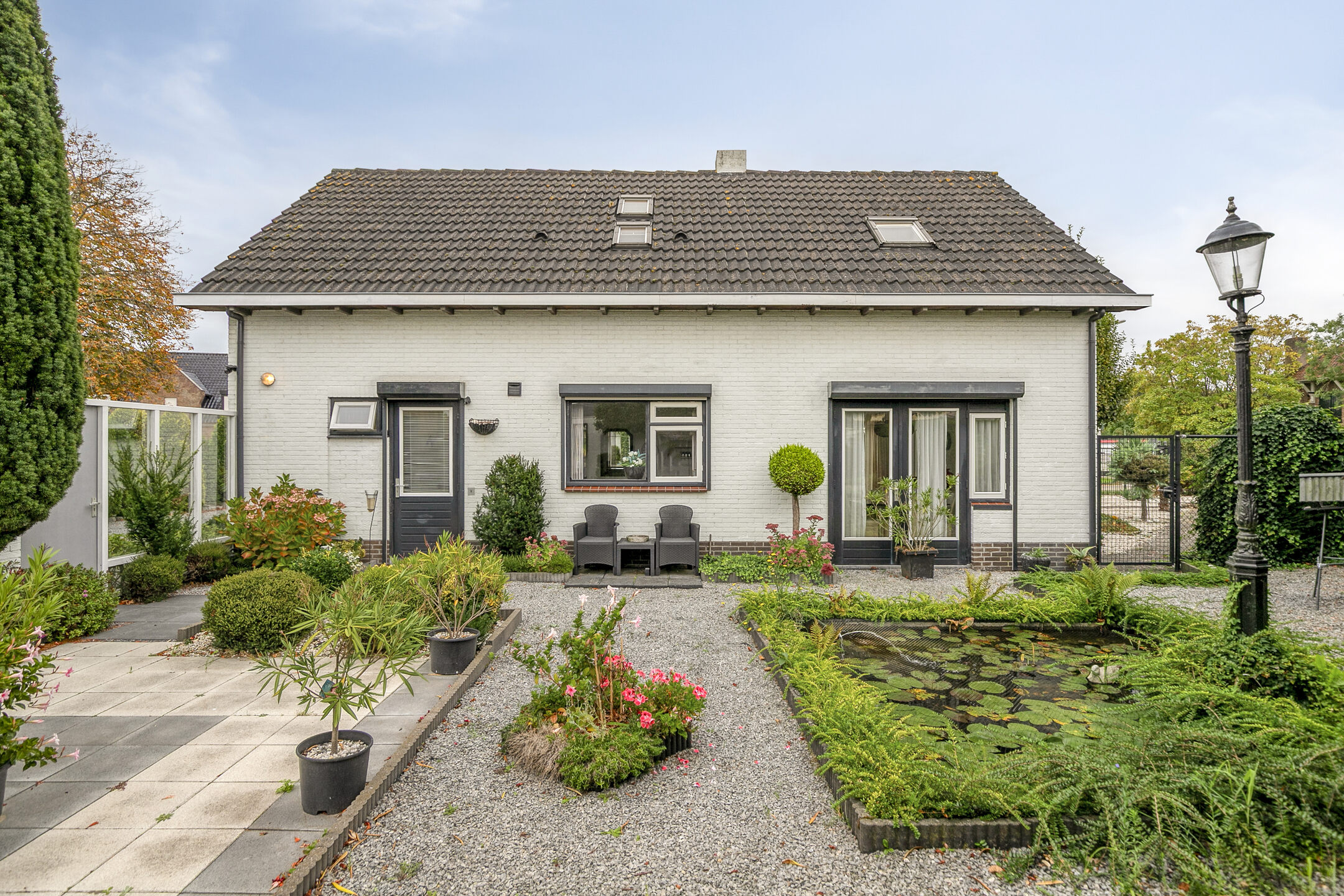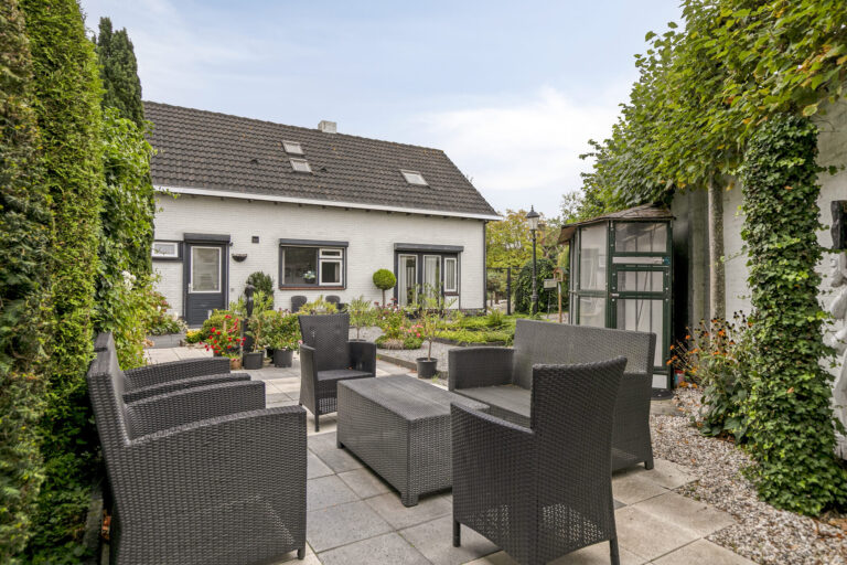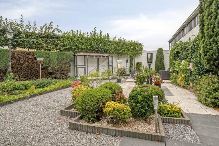 De fraai aangelegde tuin ligt rondom de woning en biedt op elk moment van de dag een prettige plek om van het buitenleven te genieten. De achtertuin is bijzonder sfeervol en biedt veel privacy. Deze is met zorg ingericht met een fraaie vijverpartij, diverse borders met beplanting en meerdere terrassen, waardoor er altijd wel een plek in de zon of schaduw te vinden is.