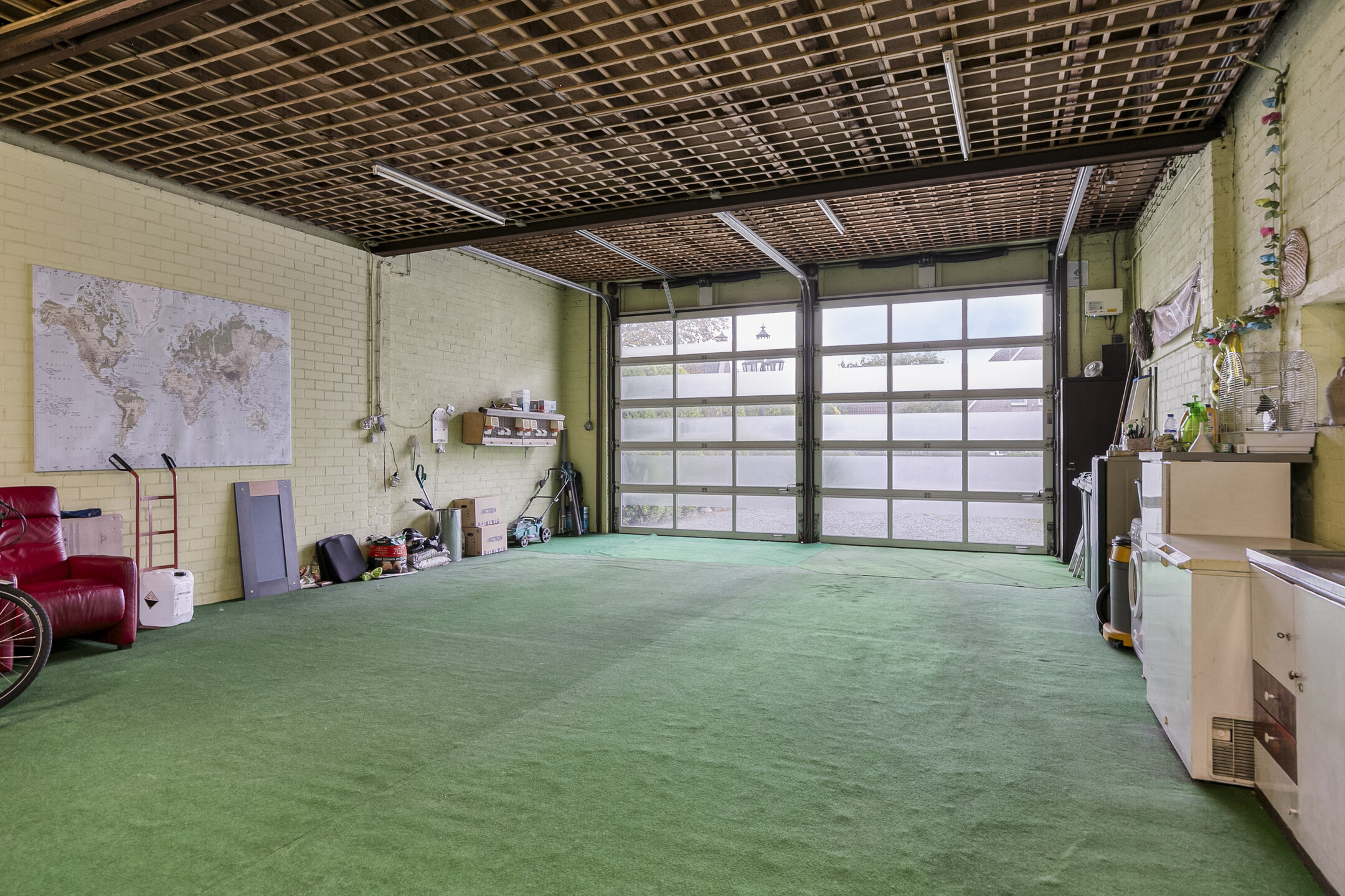 Altijd al gedroomd van extra ruimte voor je hobby, kluswerk of opslag? Dan is deze loods een absolute uitkomst. Met een afmeting van circa 7,50 meter breed en 12 meter diep biedt de ruimte volop mogelijkheden. De loods is voorzien van twee grote overheaddeuren, waardoor ook grotere voertuigen eenvoudig naar binnen kunnen rijden.