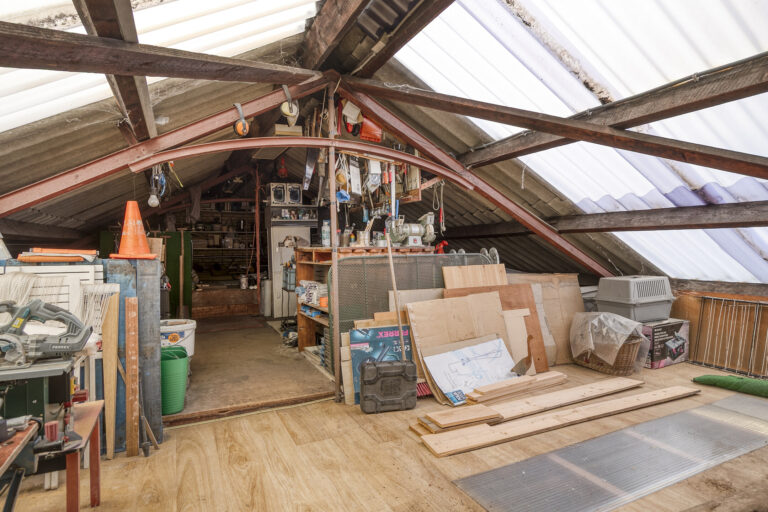 Tot slot beschikt de loods over een royale bergzolder, perfect voor het opslaan van materialen of seizoensspullen. Kortom: een multifunctionele ruimte met talloze gebruiksmogelijkheden!